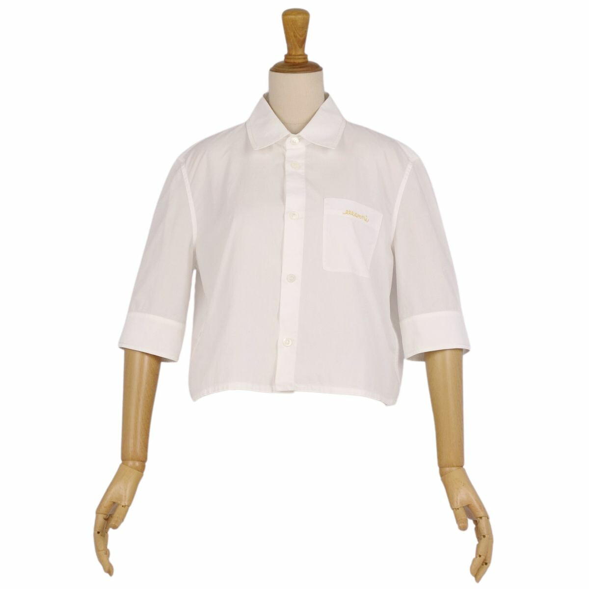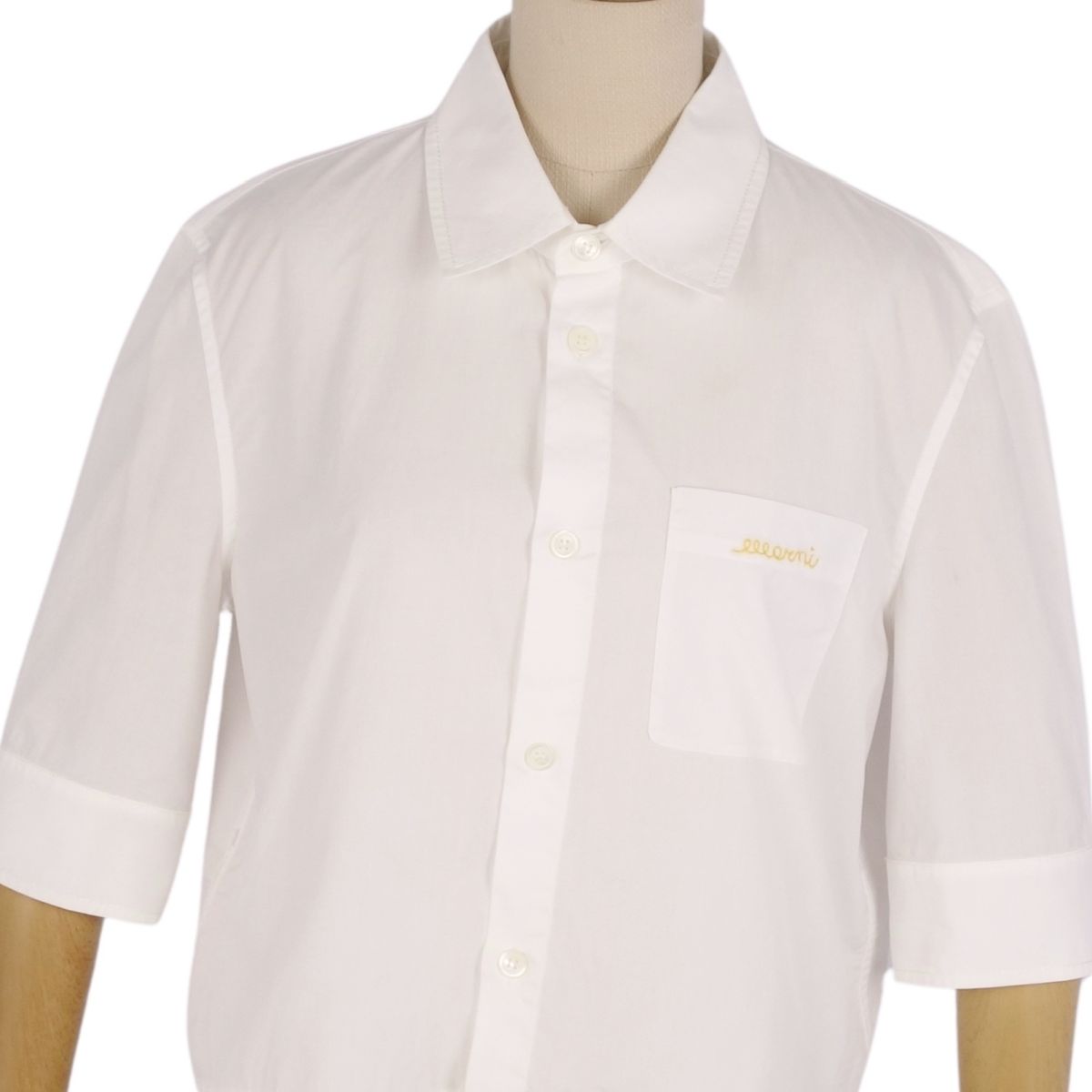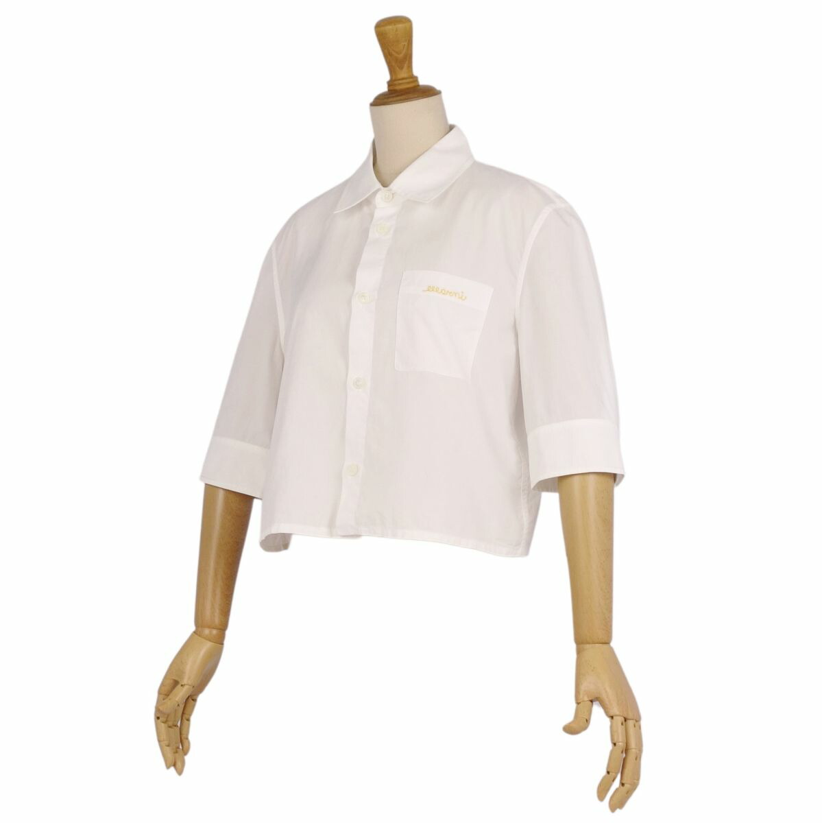 マルニ MARNI 2023SS シャツ ブラウス クロップド ショート丈 半袖 ショートスリーブ ロゴ刺繍 トップス レディース ホワイト サイズ40(M相当)