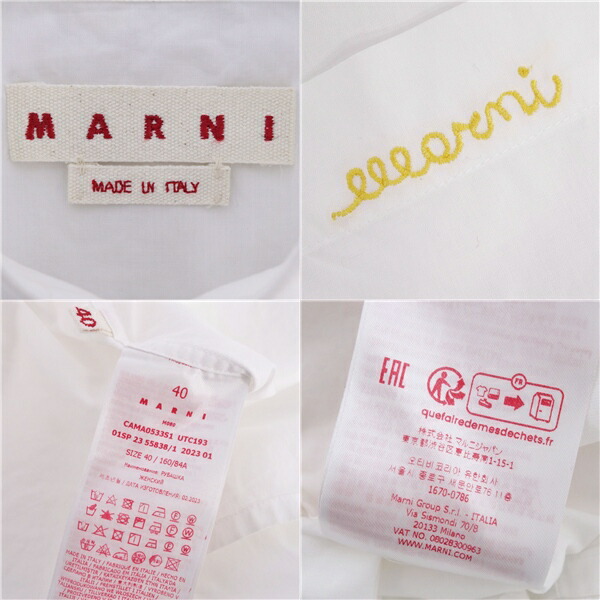 | 商品名 | 【極美品】マルニ MARNI 2023SS シャツ ブラウス クロップド ショート丈 半袖 ショートスリーブ ロゴ刺繍 トップス レディース 40(M相当) ホワイト【中古】 |