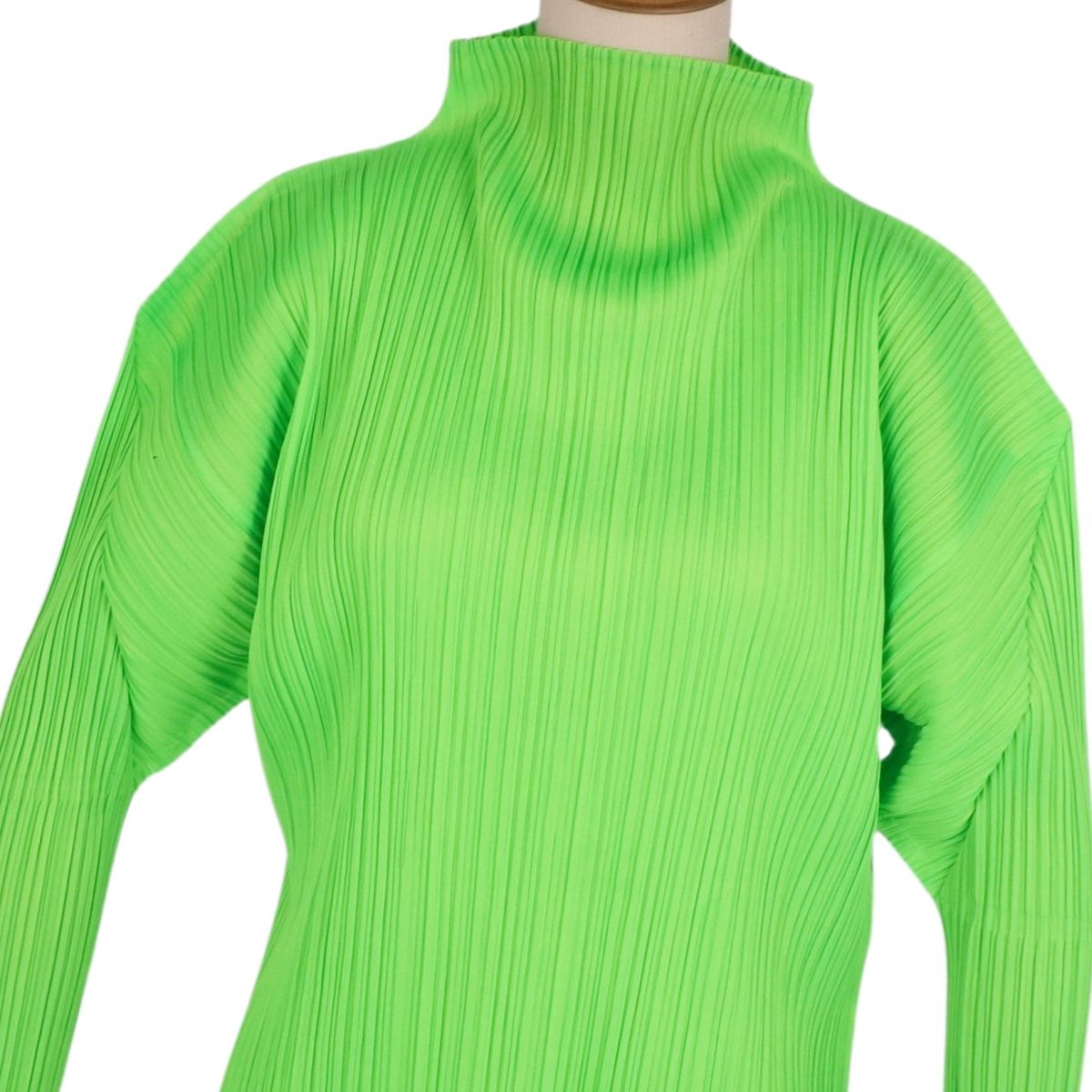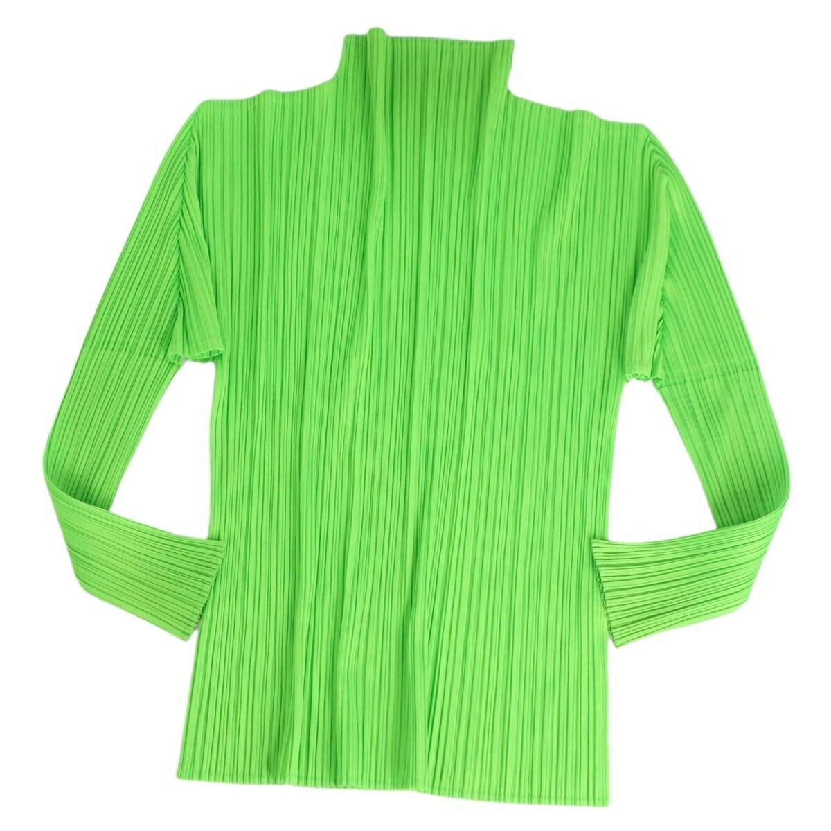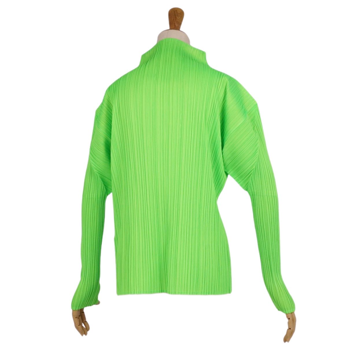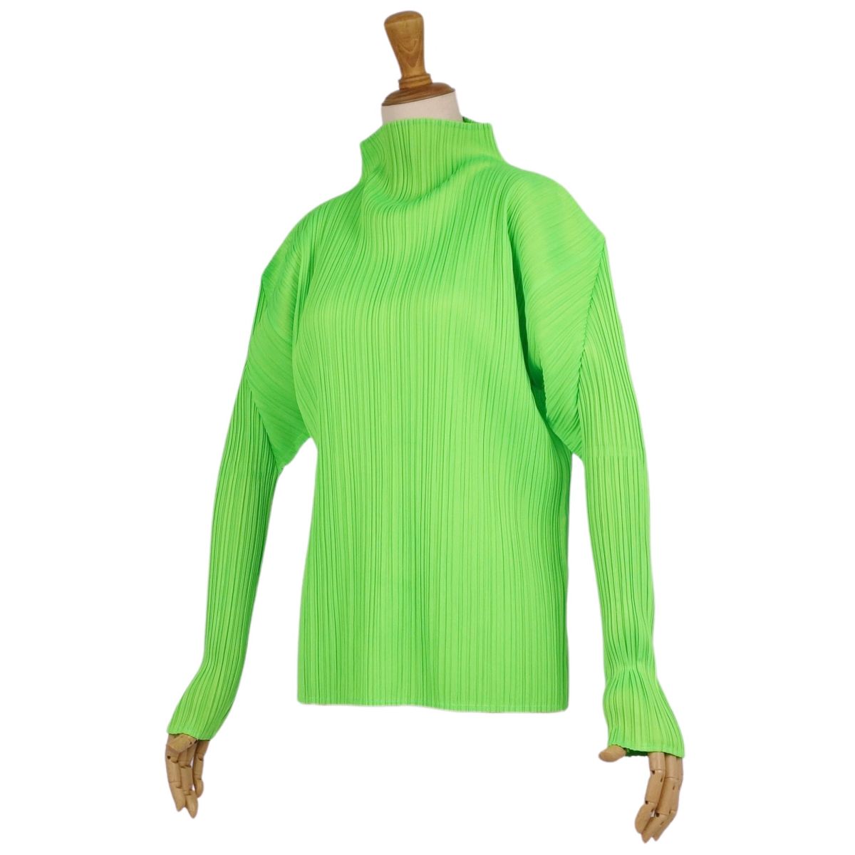 プリーツプリーズ イッセイミヤケ PLEATS PLEASE シャツ ブラウス ハイネック ロングスリーブ 長袖 プリーツ トップス レディース イエローグリーン サイズ3(L相当)