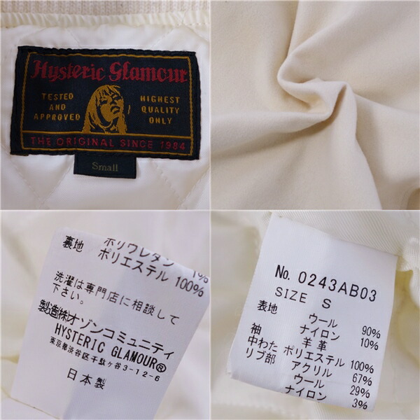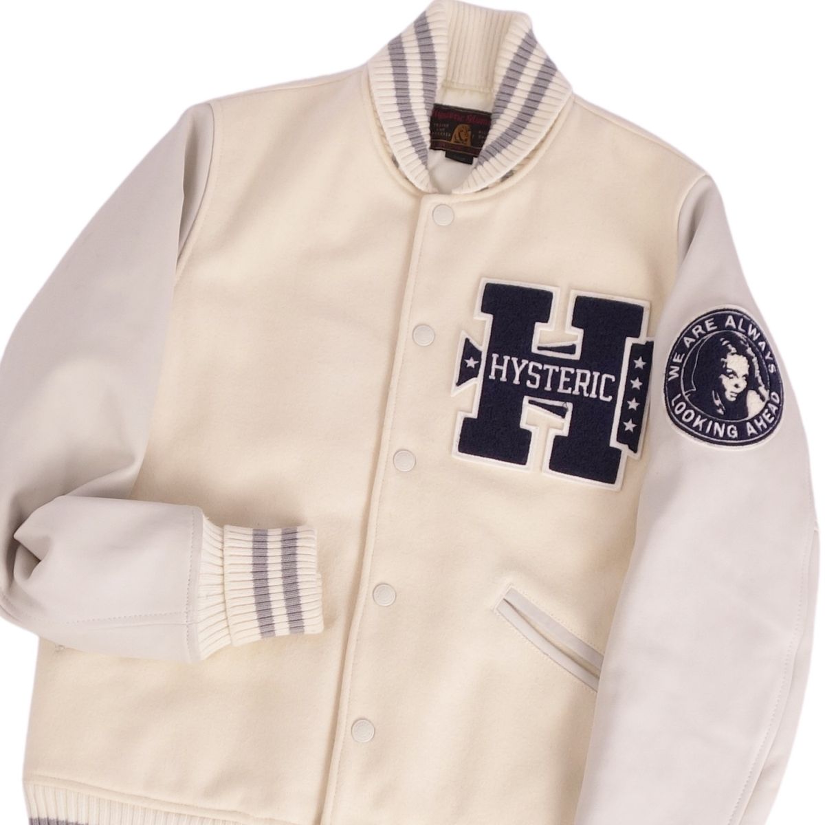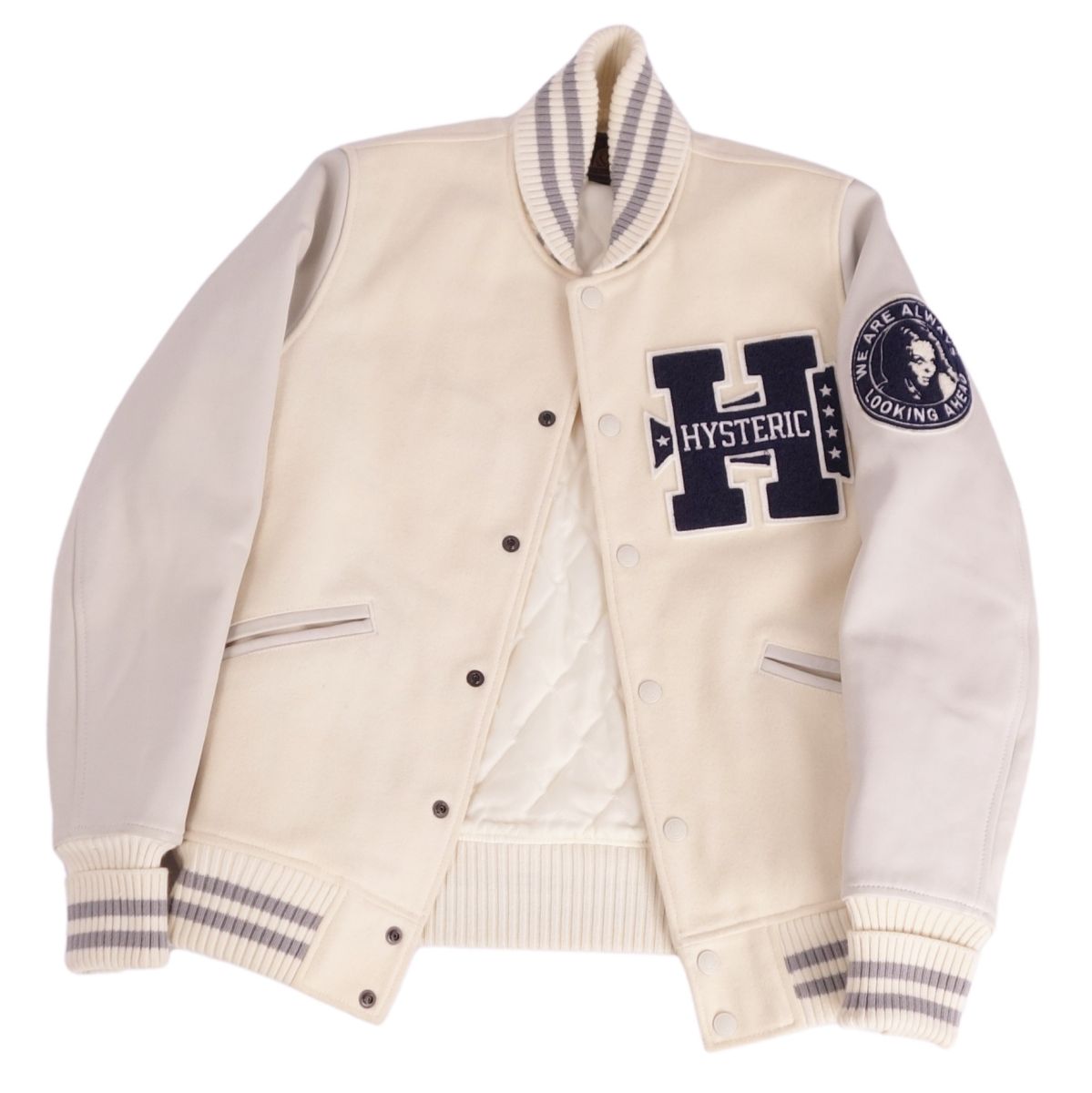 ヒステリックグラマー HYSTERIC GLAMOUR ジャケット H COLLEGE ブルゾン スタジャン ウール ラムレザー アウター メンズ ホワイト サイズS