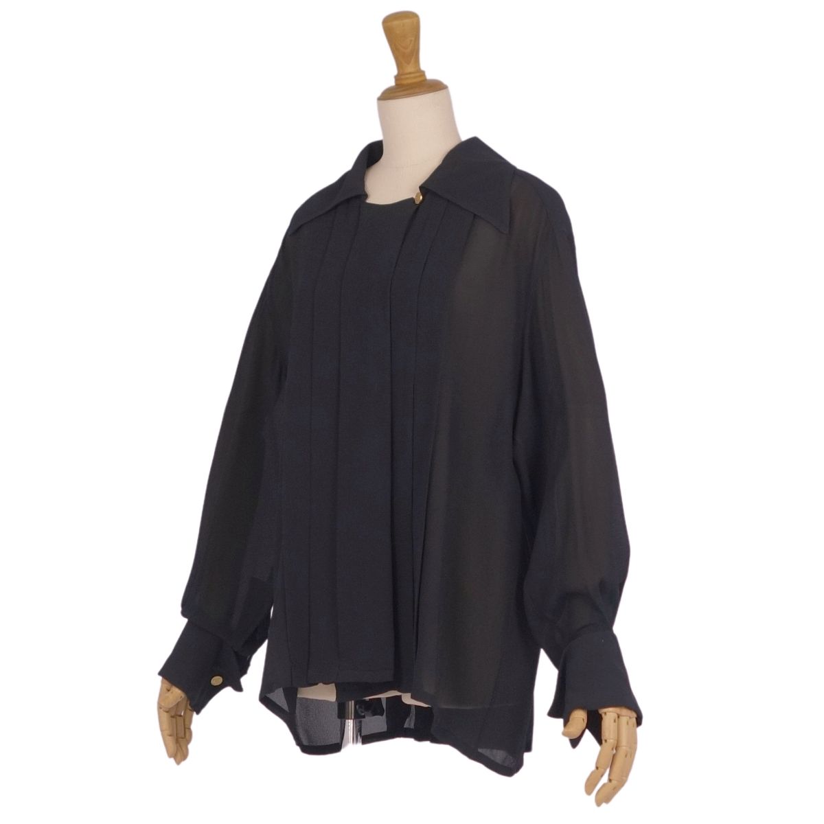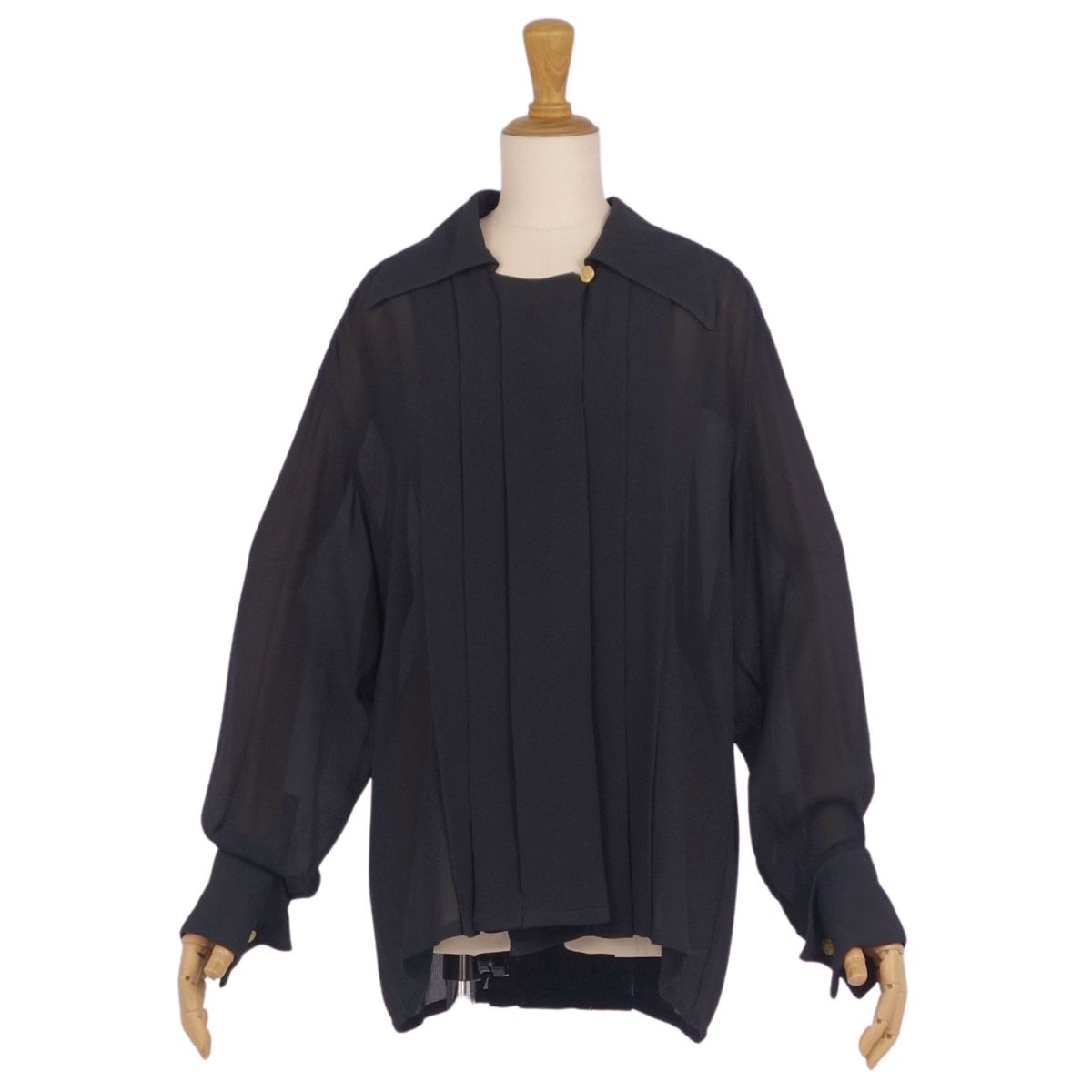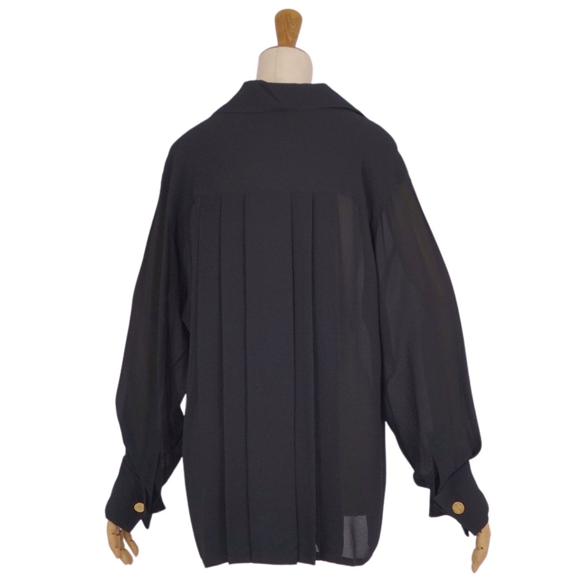 Vintage シャネル CHANEL シャツ ブラウス ロングスリーブ 長袖 ココマークボタン シルク トップス レディース ブラック サイズM相当