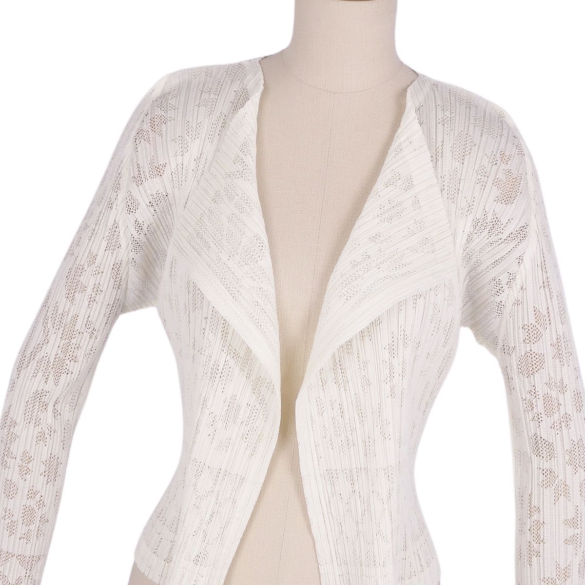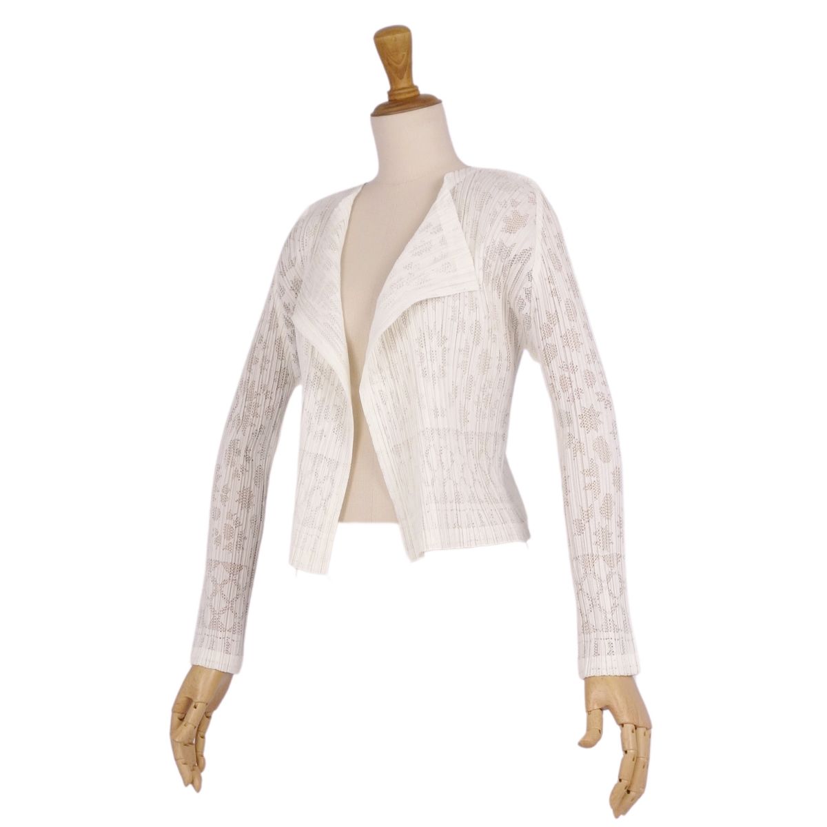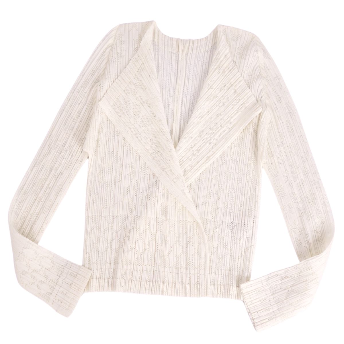 プリーツプリーズ イッセイミヤケ PLEATS PLEASE カーディガン ボタンレス プリーツ アウター レディース ホワイト サイズ3(L相当)