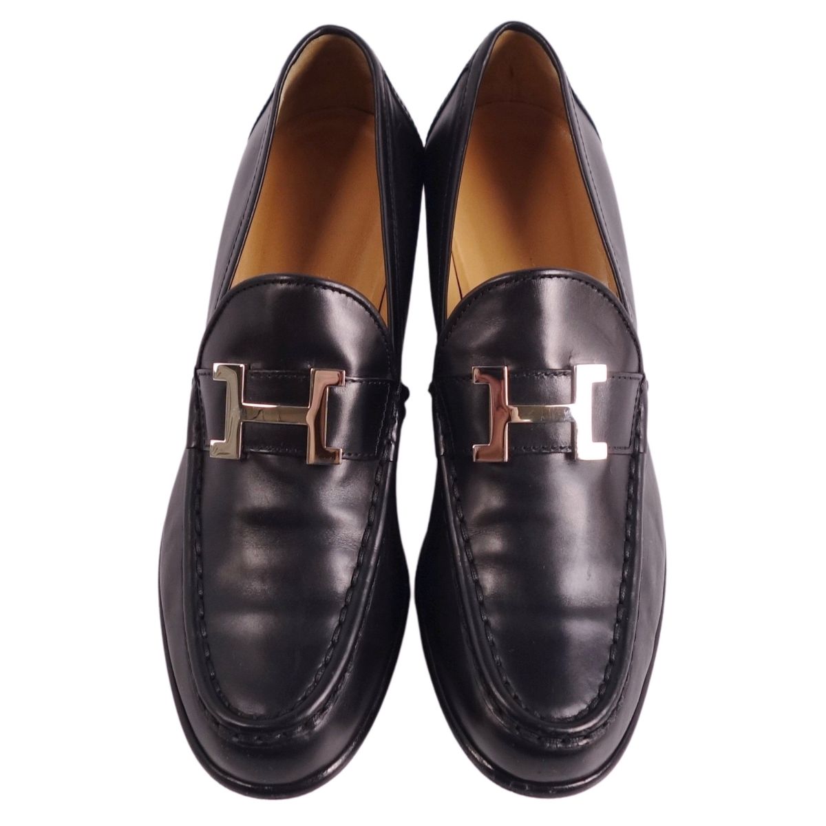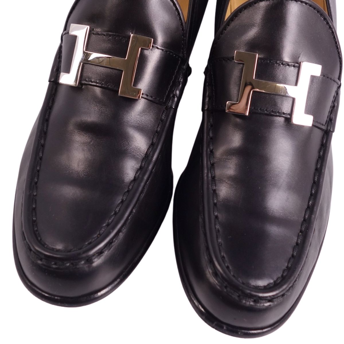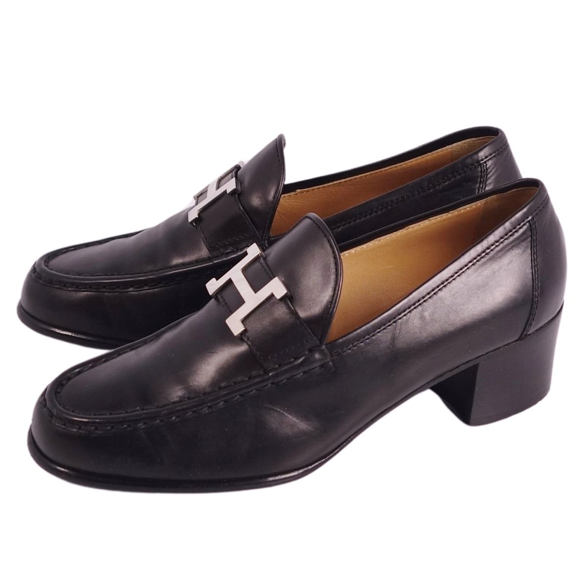 エルメス HERMES ローファー モカシン ヒール コンスタンス Hロゴ金具 カーフレザー シューズ 靴 レディース ブラック サイズ37(24cm相当)
