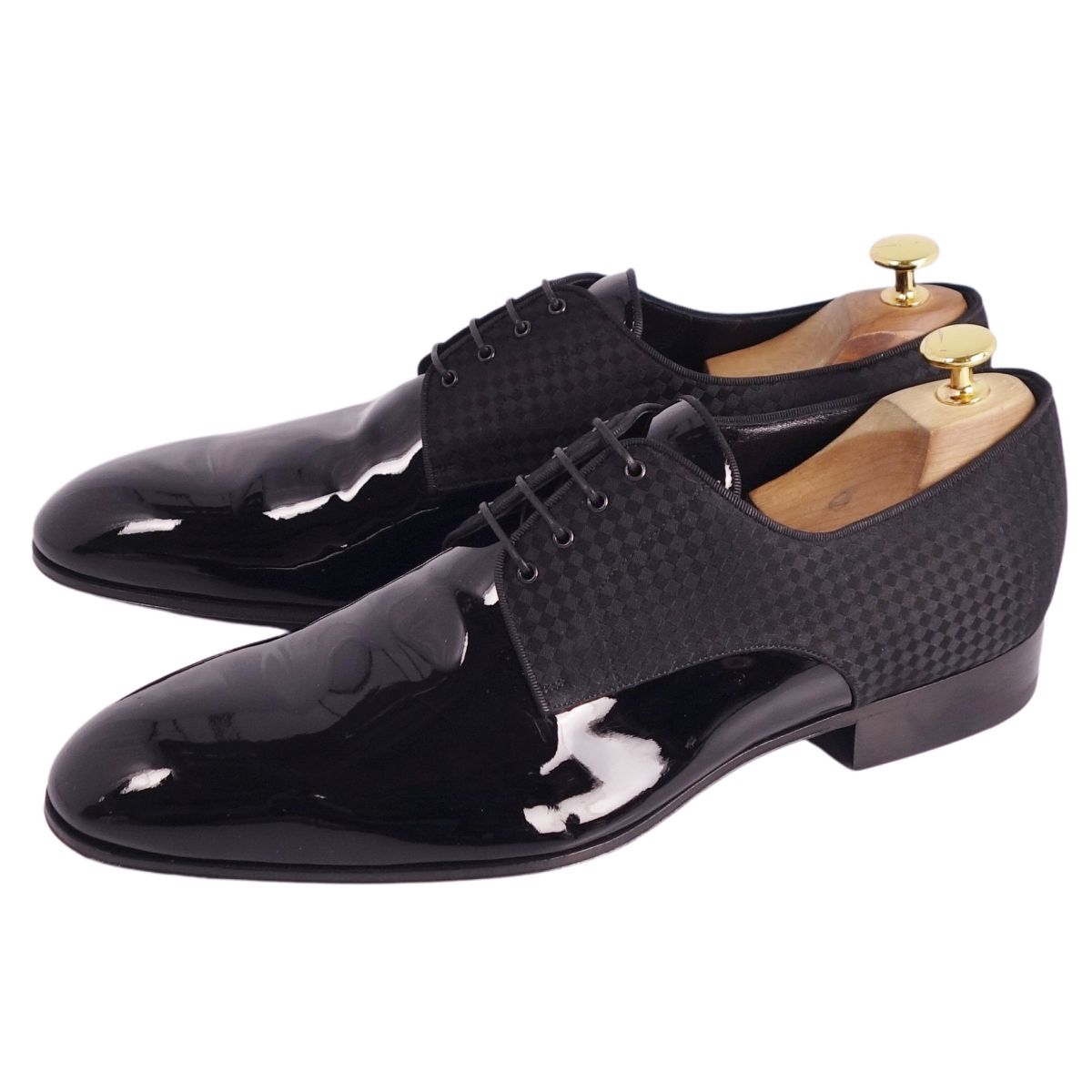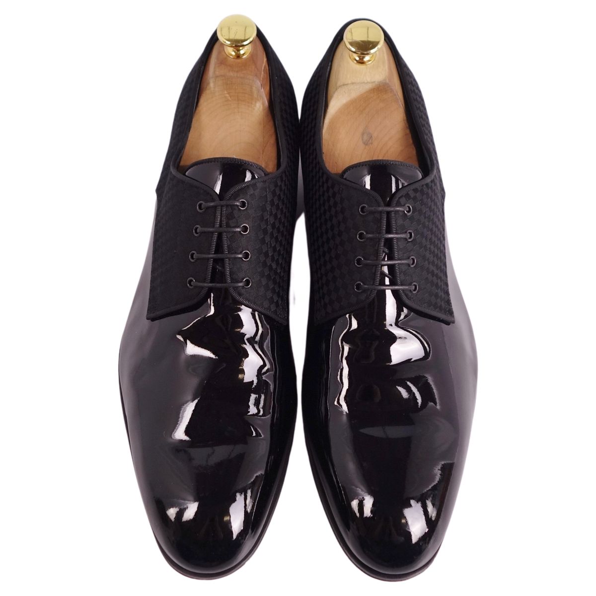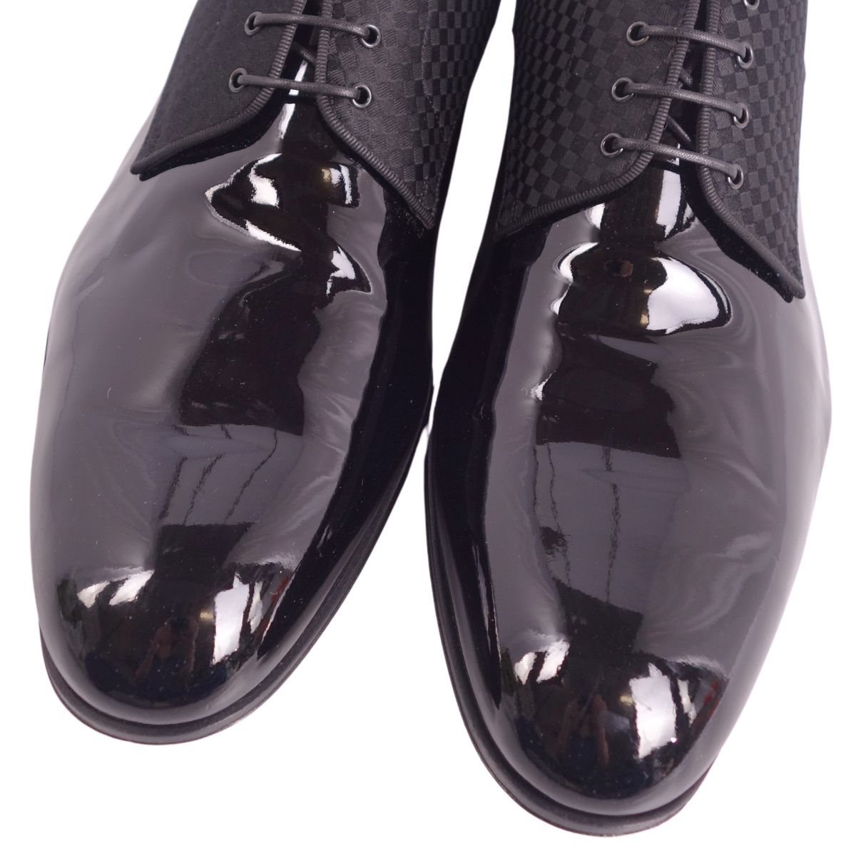 ルイヴィトン LOUIS VUITTON ソルフェリーノ ライン レザーシューズ ダービーシューズ ドレスシューズ ダミエ パテントレザー サテン シューズ 革靴 メンズ ブラック サイズ10(28.5cm相当)