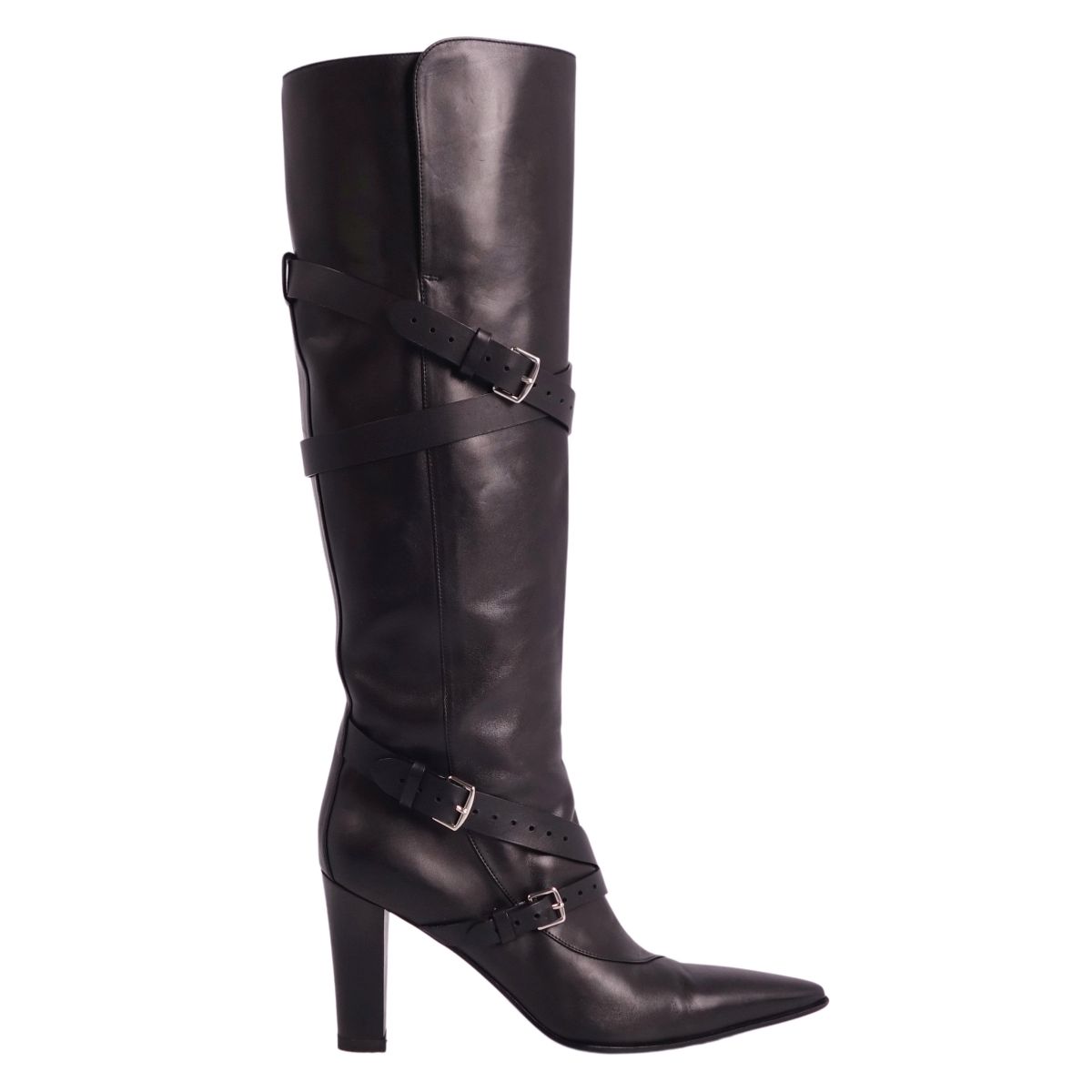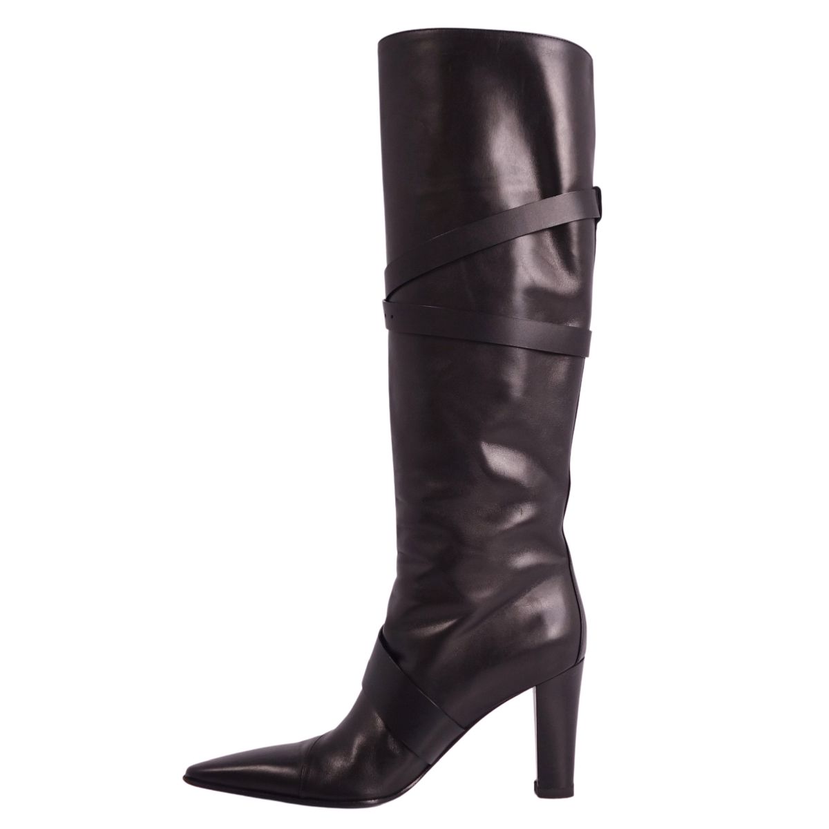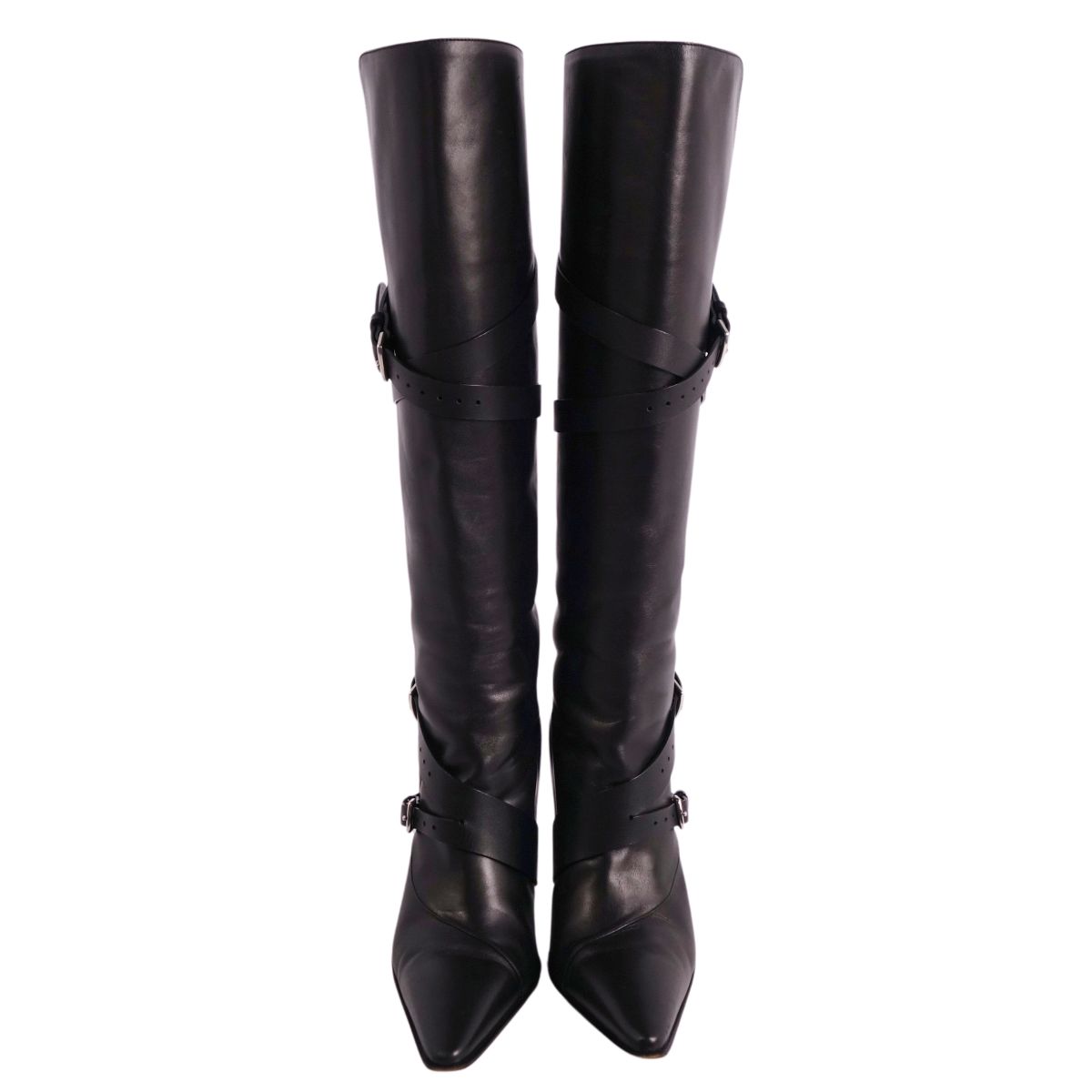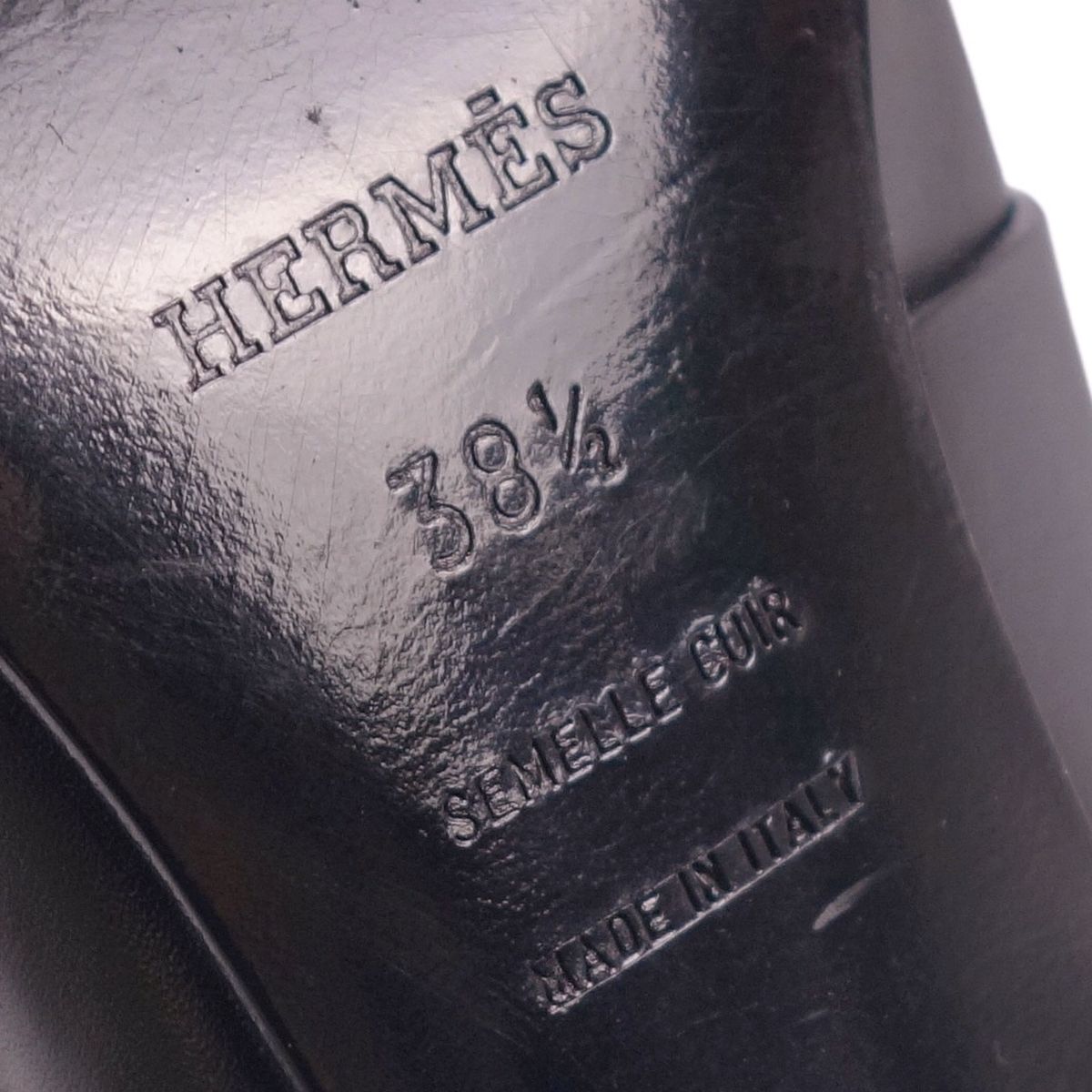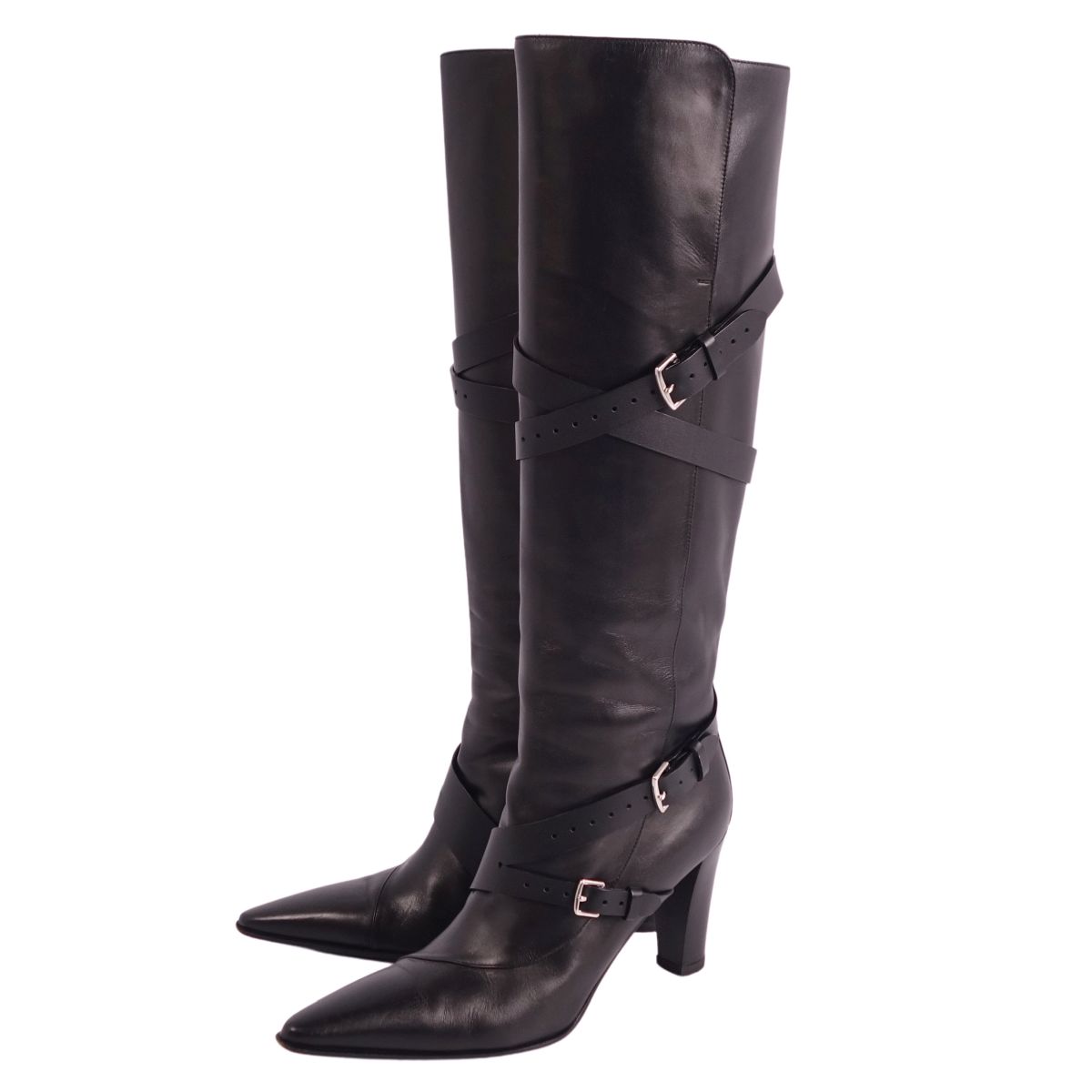 エルメス HERMES ブーツ ロングブーツ ヒール バックル カーフレザー シューズ 靴 レディース ブラック サイズ38.5(25.5cm相当)
