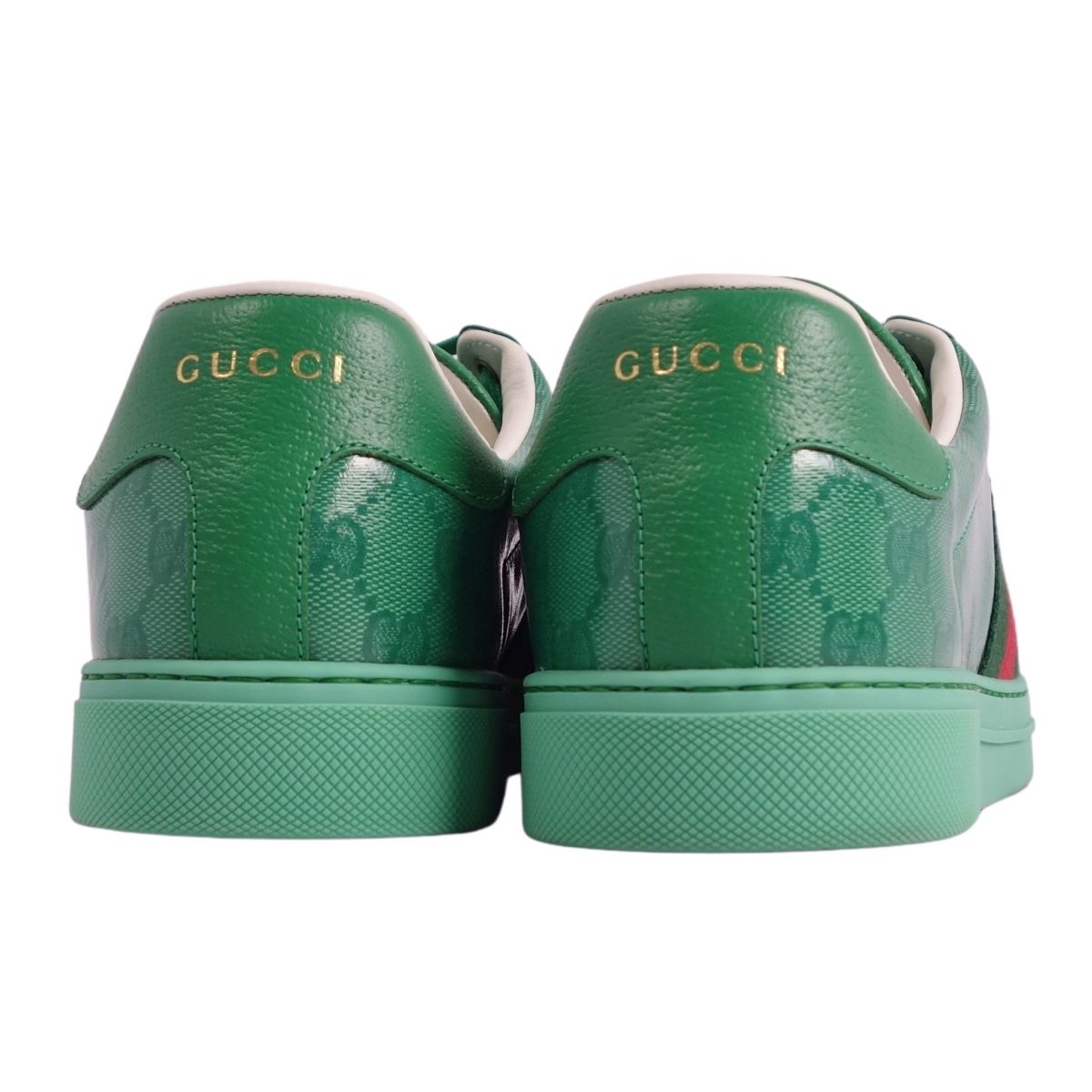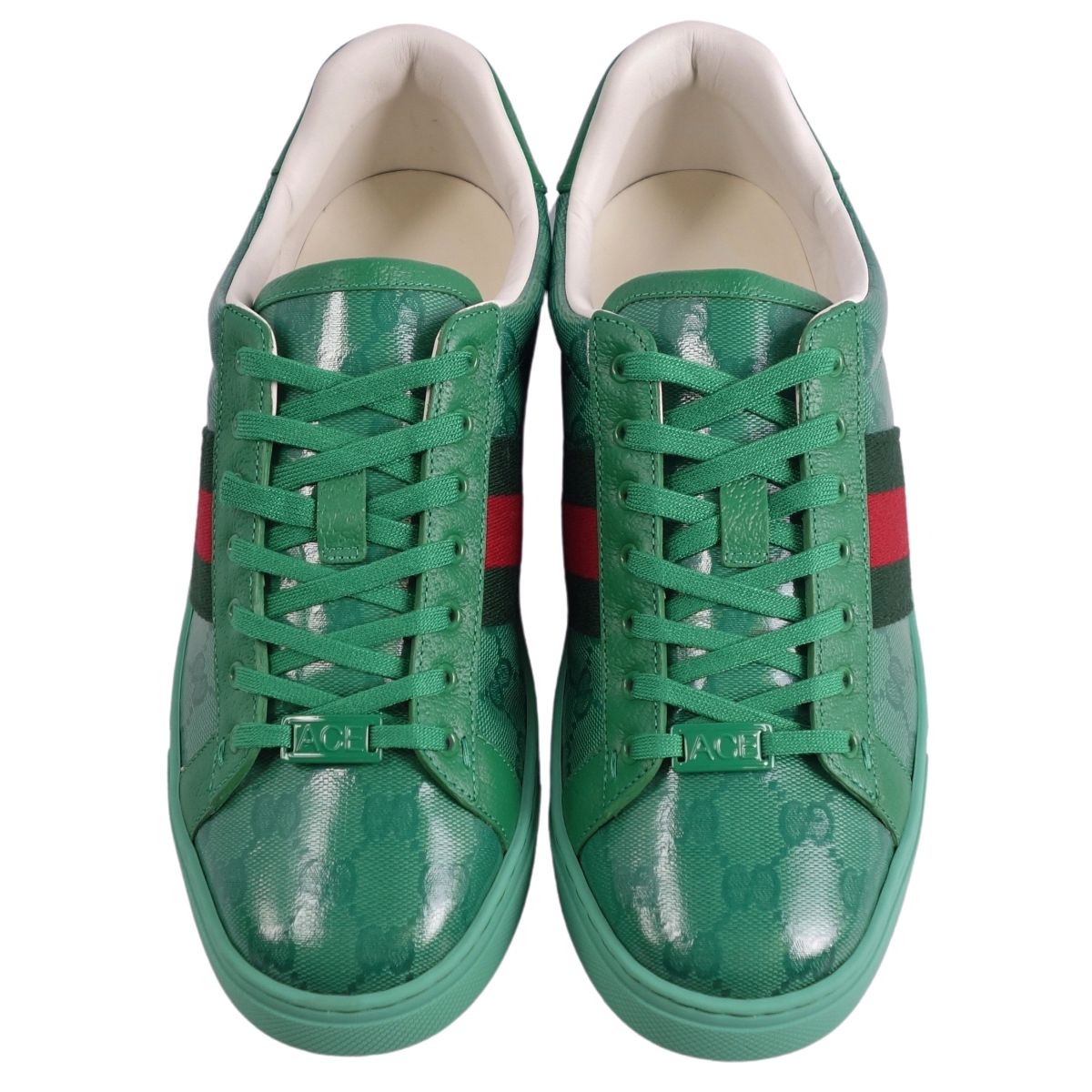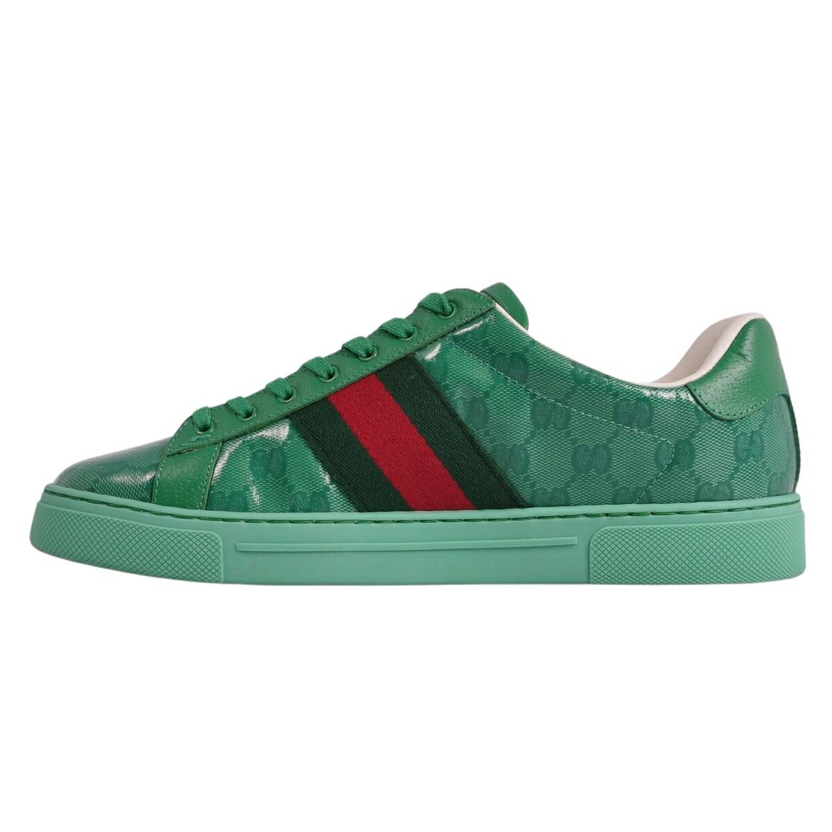 グッチ GUCCI スニーカー ACE エース GGスプリーム ウェブストライプ シェリーライン PVC シューズ 靴 メンズ グリーン サイズ8.5(27.5cm相当)