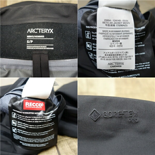 アークテリクス ARCTERYX BETA AR JACKET MEN’S S ブラック ベータ ジャケット アウター アウトドア ブラック サイズS