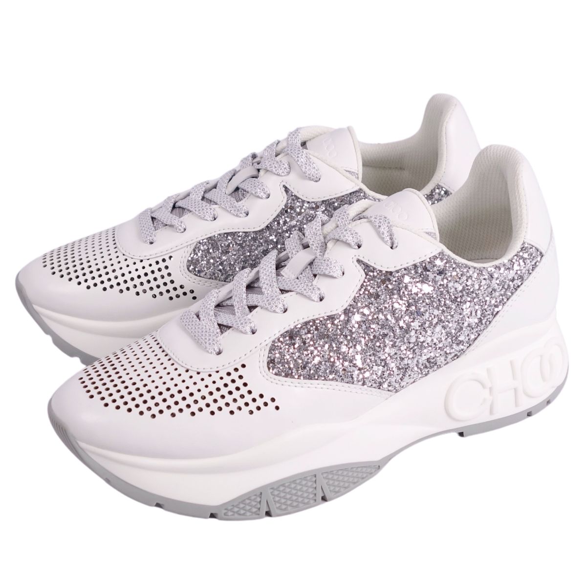 ジミーチュウ JIMMY CHOO スニーカー ローカット グリッター レザー シューズ 靴 レディース ホワイト サイズ39(26cm相当)