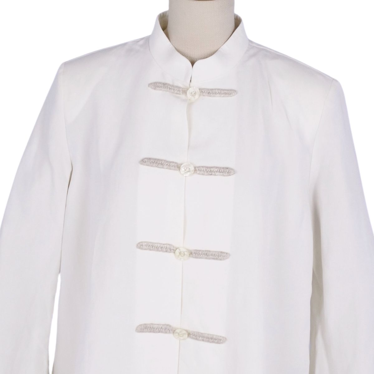 | 商品名 | 【美品】Vintage イヴサンローラン Yves Saint Laurent チャイナジャケット スタンドカラー チャイナボタン リネン トップス レディース 34(S相当) ホワイト【中古】 |
