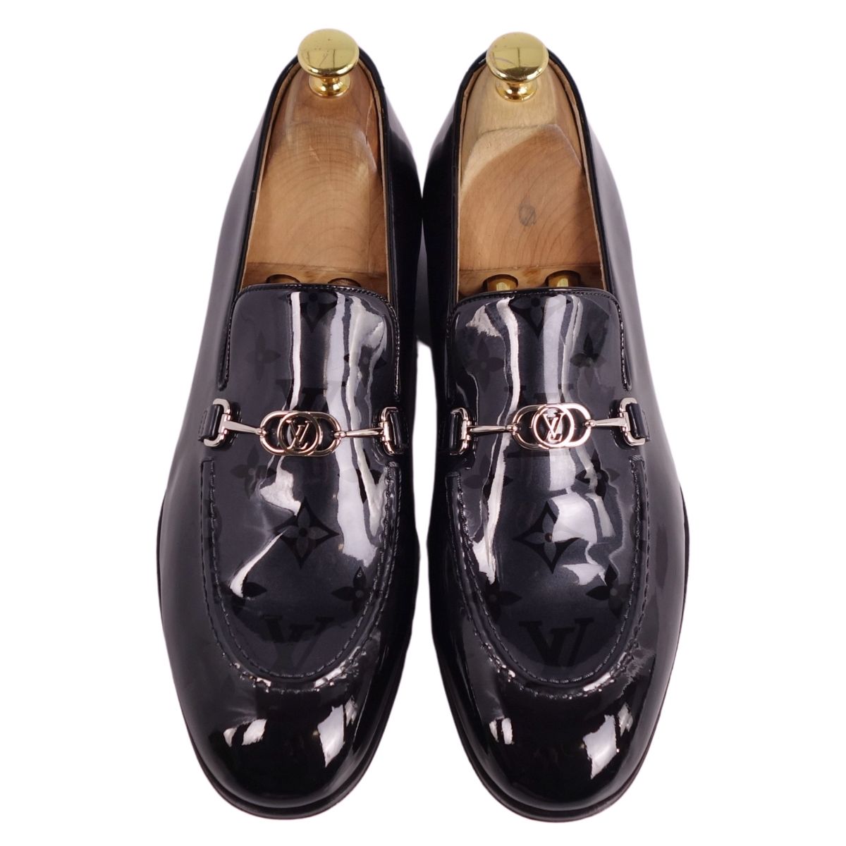 ルイヴィトン LOUIS VUITTON ローファー LVクラブライン モカシン モノグラム エナメルレザー シューズ 靴 メンズ イタリア製 ブラック サイズ7L(26cm相当)
