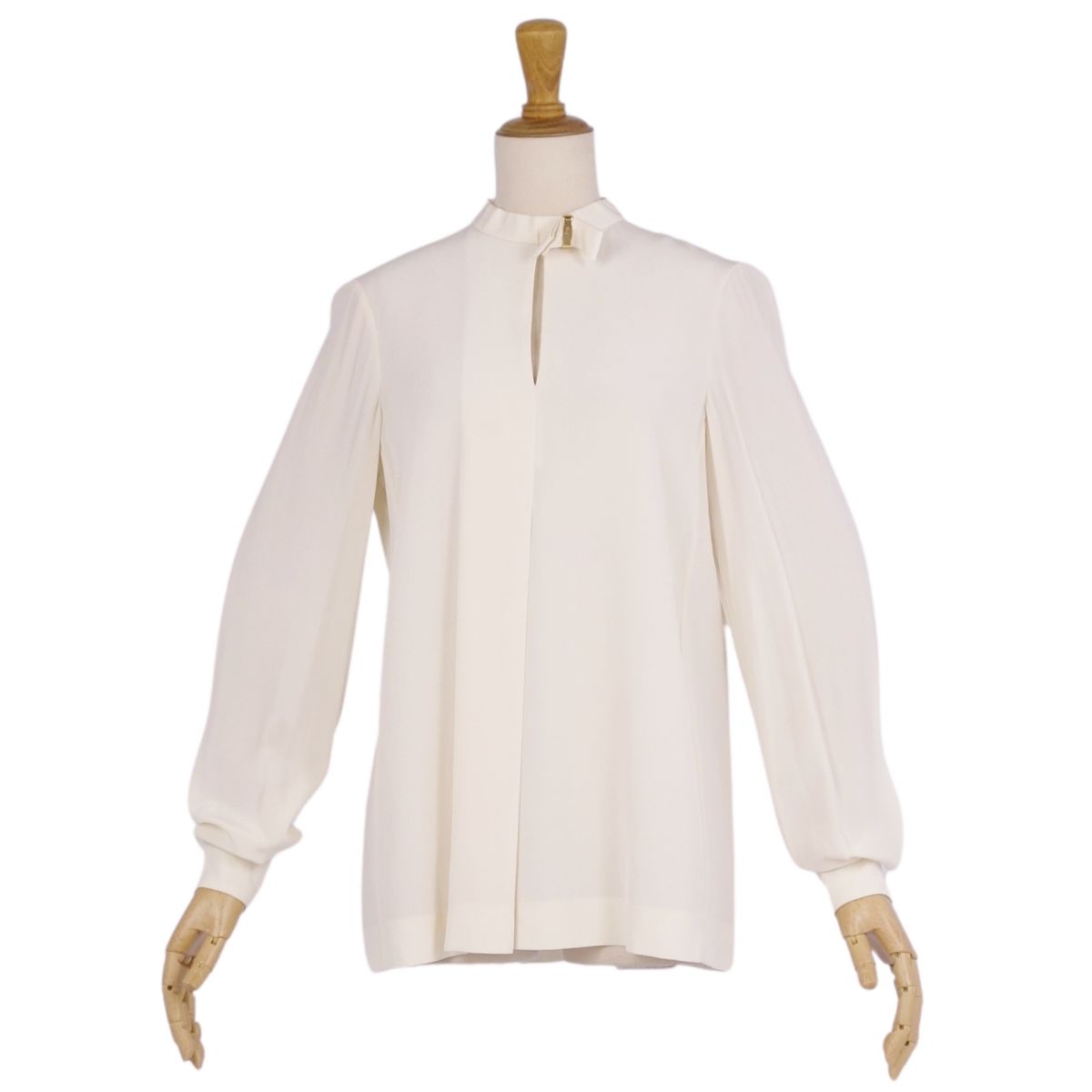 【美品】サルヴァトーレ フェラガモ Salvatore Ferragamo シャツ ブラウス ロングスリーブ 長袖 シルク トップス レディース イタリア製 38(M相当) ホワイト【中古】