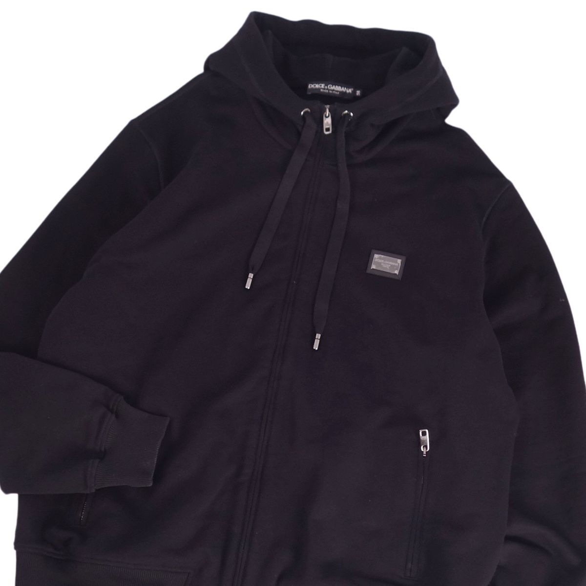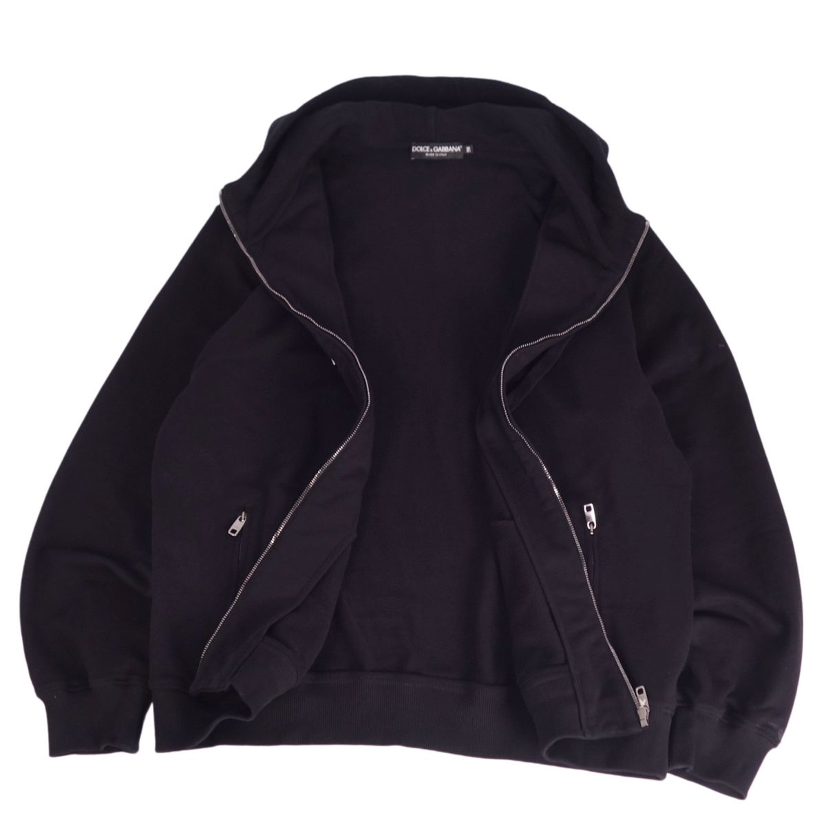 ドルチェ&ガッバーナ DOLCE&GABBANA パーカー フーディー スウェット ジップアップ コットン トップス メンズ イタリア製 ブラック サイズ58(XXXL相当)