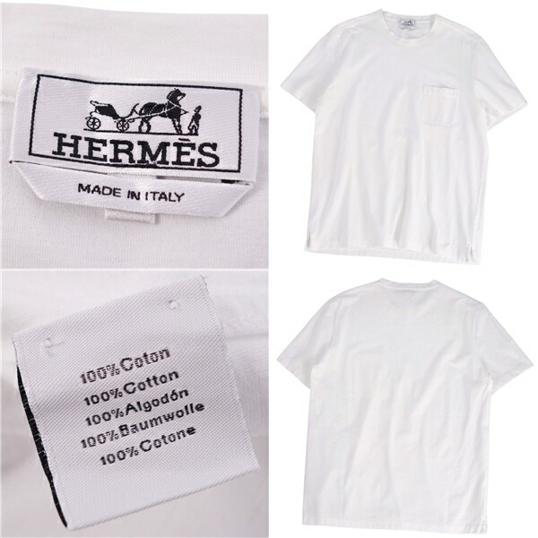 エルメス HERMES Tシャツ カットソー ショートスリーブ 半袖 コットン トップス メンズ イタリア製 ホワイト サイズL