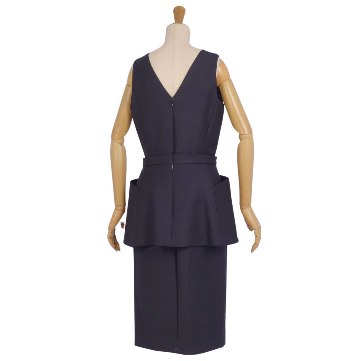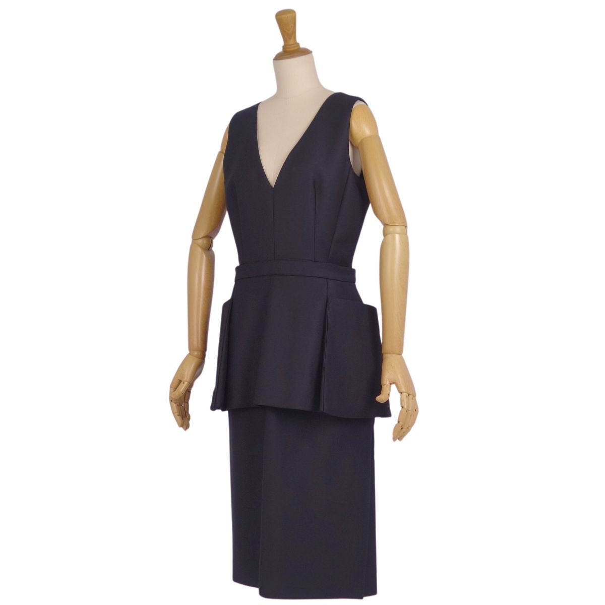 クリスチャンディオール Christian Dior ワンピース ノースリーブ ウール トップス レディース フランス製 ネイビー サイズI42(L相当)