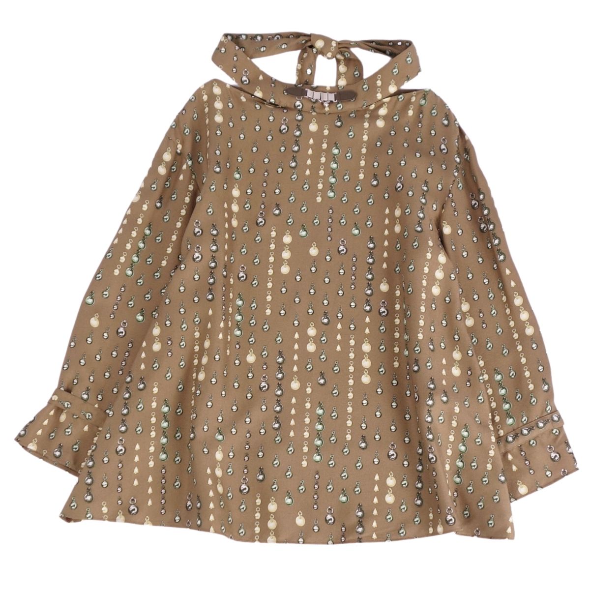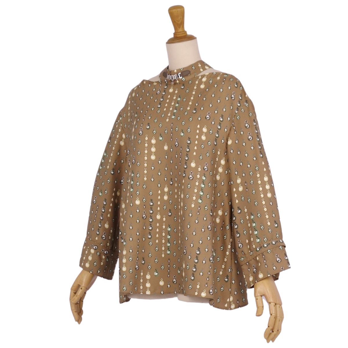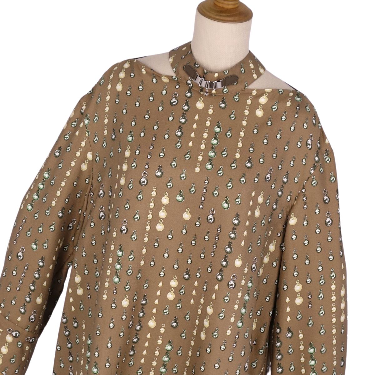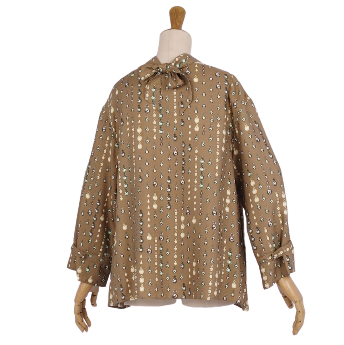 エルメス HERMES シャツ 22AW ブラウス ロングスリーブ 長袖 総柄 シルク トップス レディース フランス製 ブラウン サイズ34(S相当)