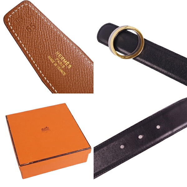商品名 【美品】エルメス HERMES 95年 ベルト レザーベルト バックル レザー レディース フランス製 65 ブラック【中古】