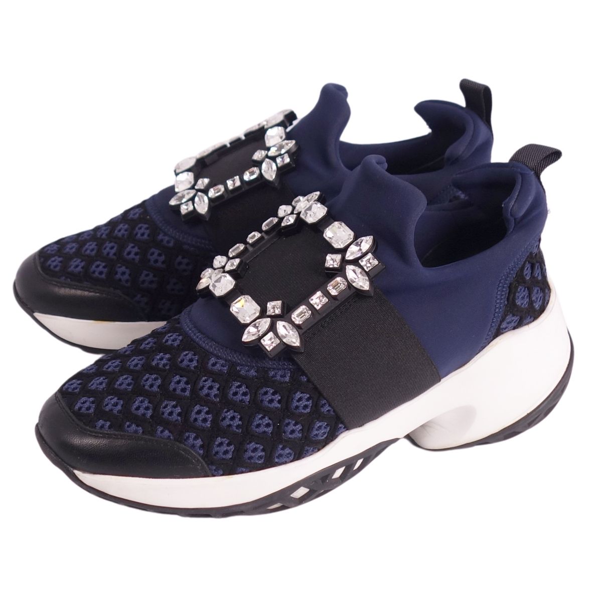 商品名 【美品】ロジェヴィヴィエ Roger Vivier スニーカー スリッポン VIV RUN ヴィヴ ラン クリスタルバックル シューズ 靴 レディース イタリア製 36(23cm相当) ネイビー【中古】
