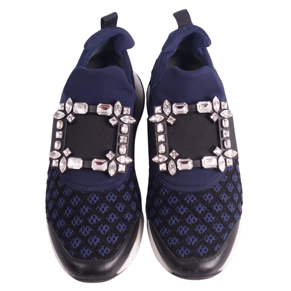 ロジェヴィヴィエ Roger Vivier スニーカー スリッポン VIV RUN ヴィヴ ラン クリスタルバックル シューズ 靴 レディース イタリア製 ネイビー サイズ36(23cm相当)