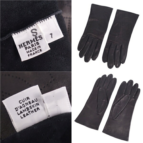 商品名 【極美品】エルメス HERMES 手袋 グローブ Hロゴ ラムレザー レディース フランス製 7 ブラック【中古】