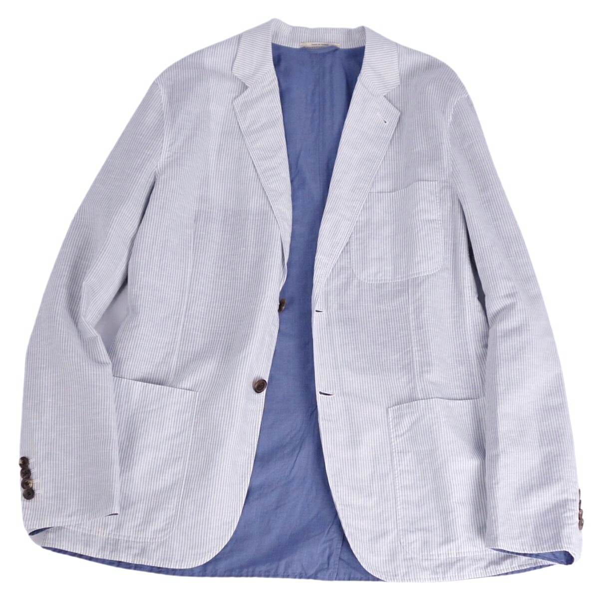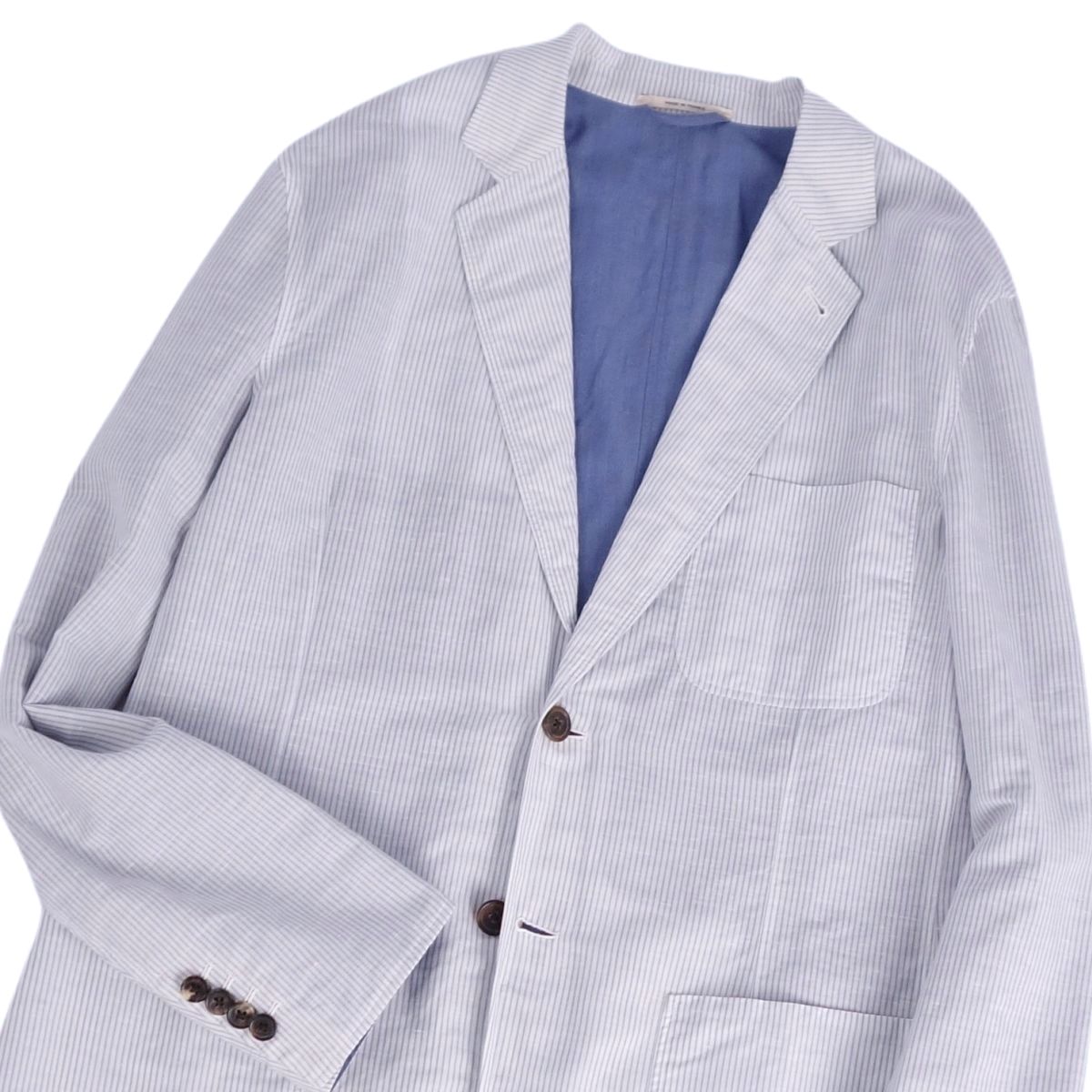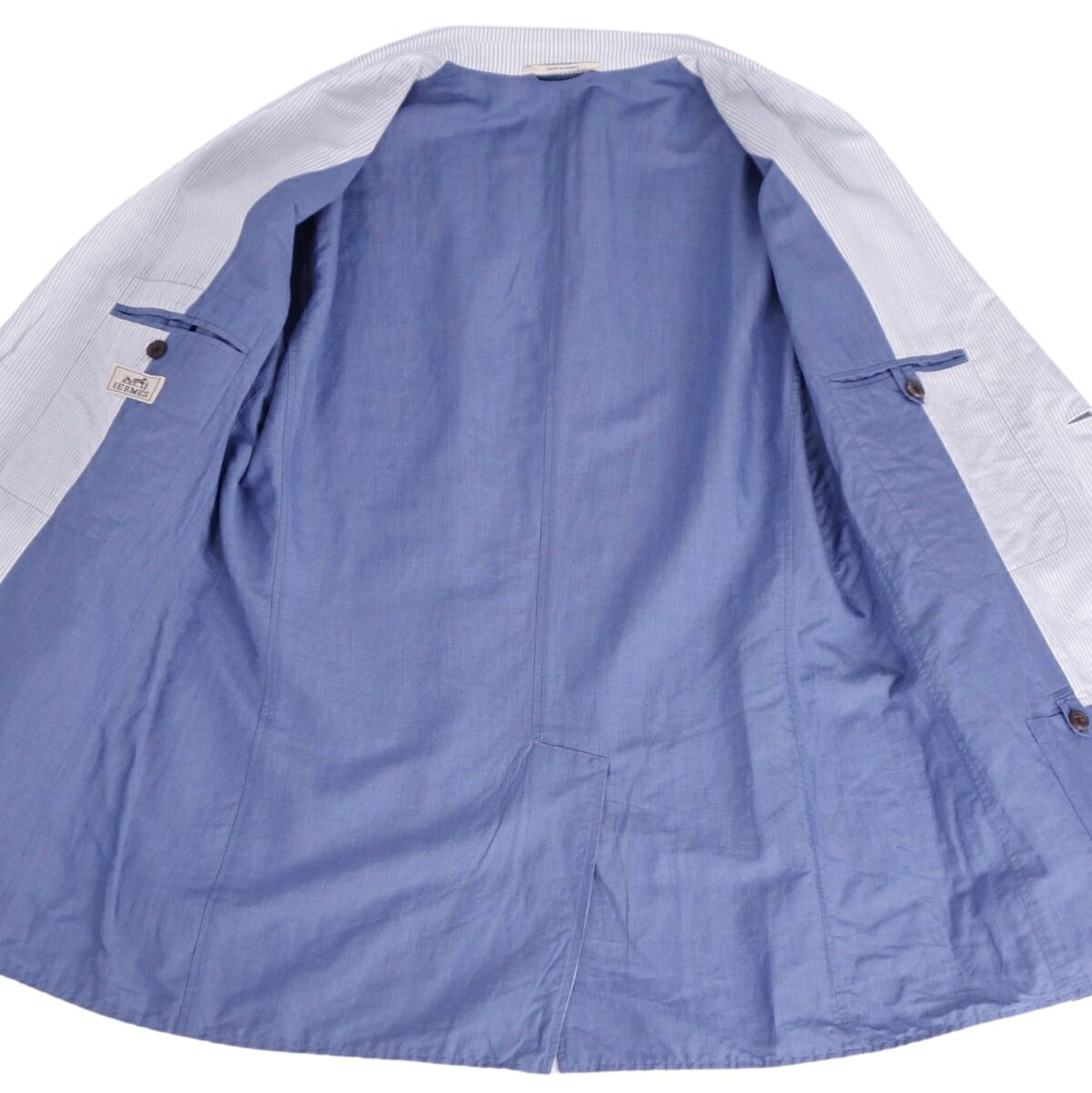 エルメス HERMES ジャケット テーラード ストライプ リネン コットン アウター メンズ フランス製 ブルー サイズ52(L相当)