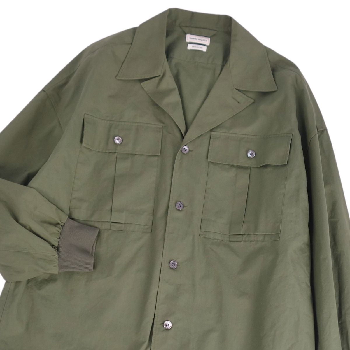 アレキサンダーマックイーン Alexander McQueen シャツ ジャケット ロングスリーブ 長袖 コットン ロゴ アウター メンズ イタリア製 カーキグリーン サイズ15++(M相当)