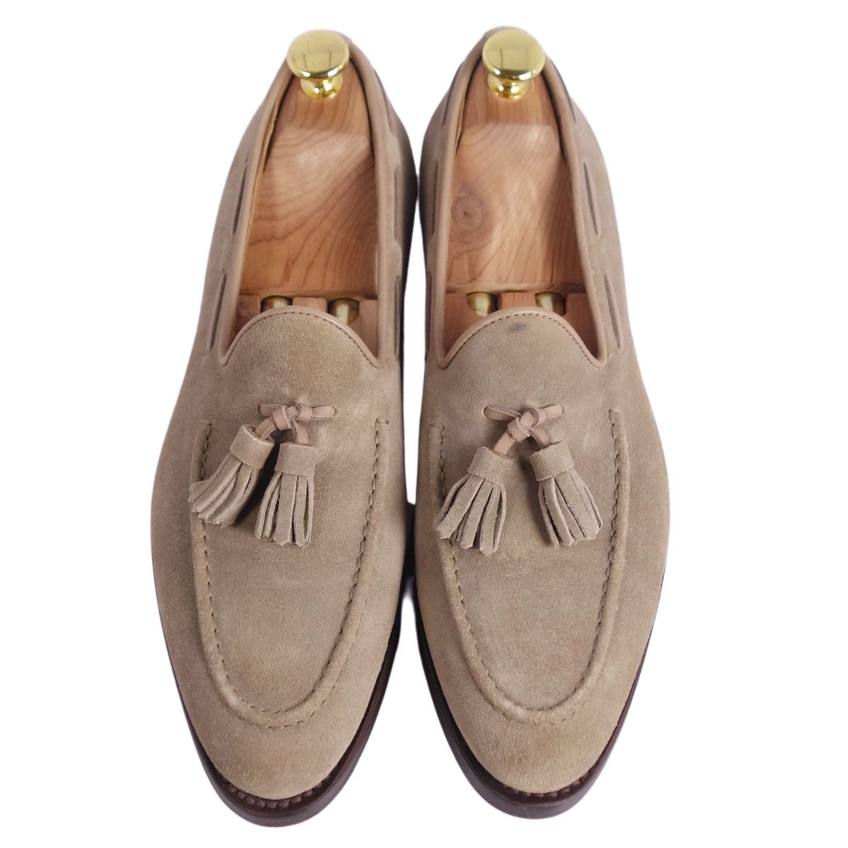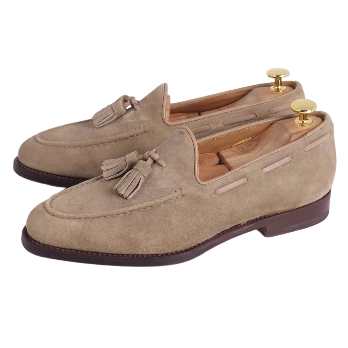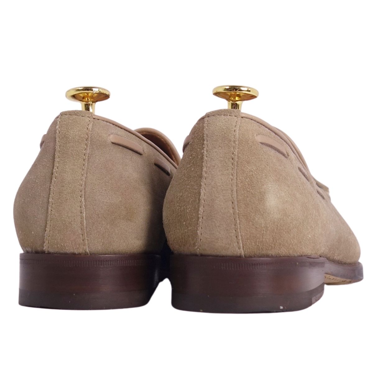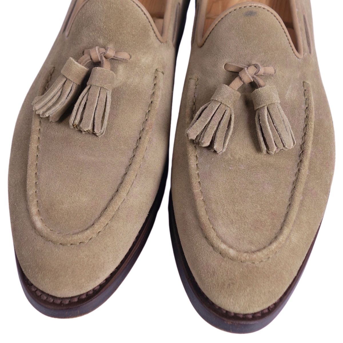 サントーニ ビームス Santoni BEAMS ローファー モカシン タッセル スウェードレザー 革靴 メンズ ベージュ サイズ4.5(24cm相当)