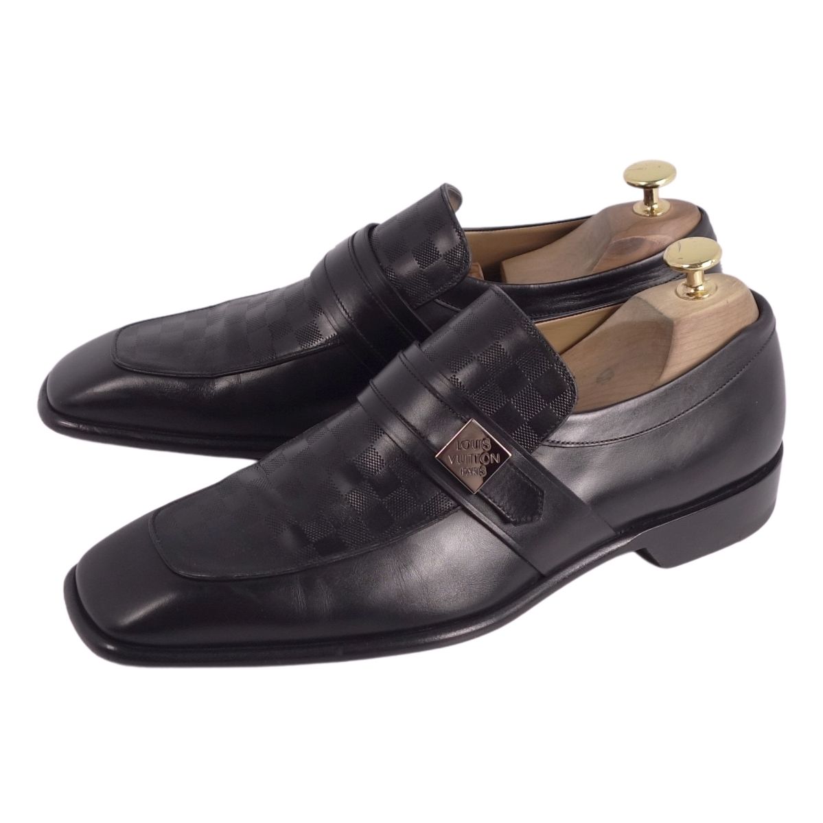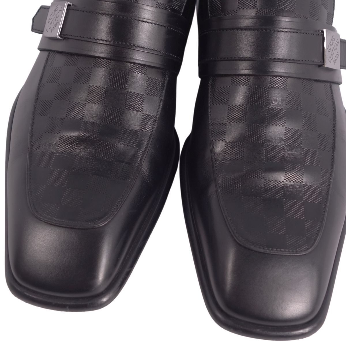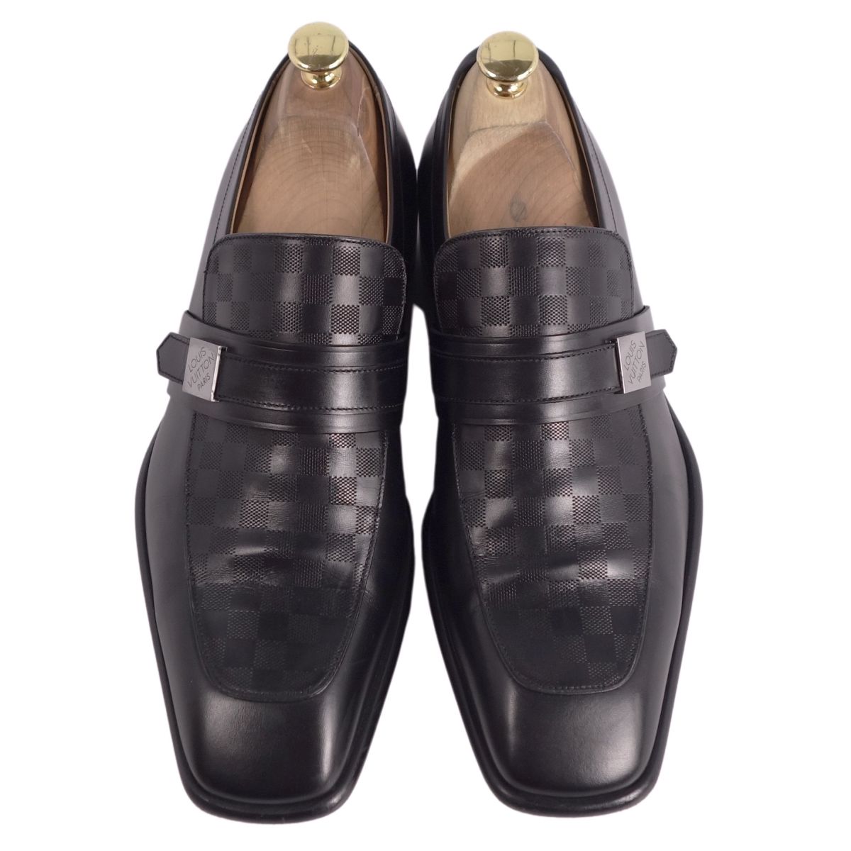 ルイヴィトン LOUIS VUITTON ローファー モカシン レザー ビジネスシューズ ダミエ ドレスシューズ 靴 イタリア製 メンズ ブラック サイズ7(26cm相当)