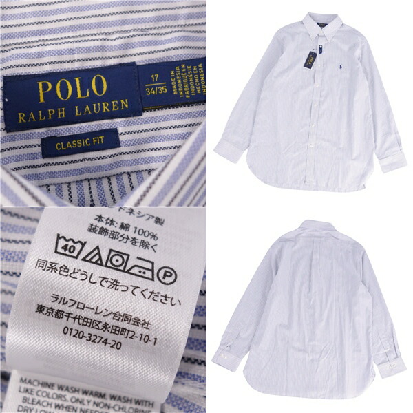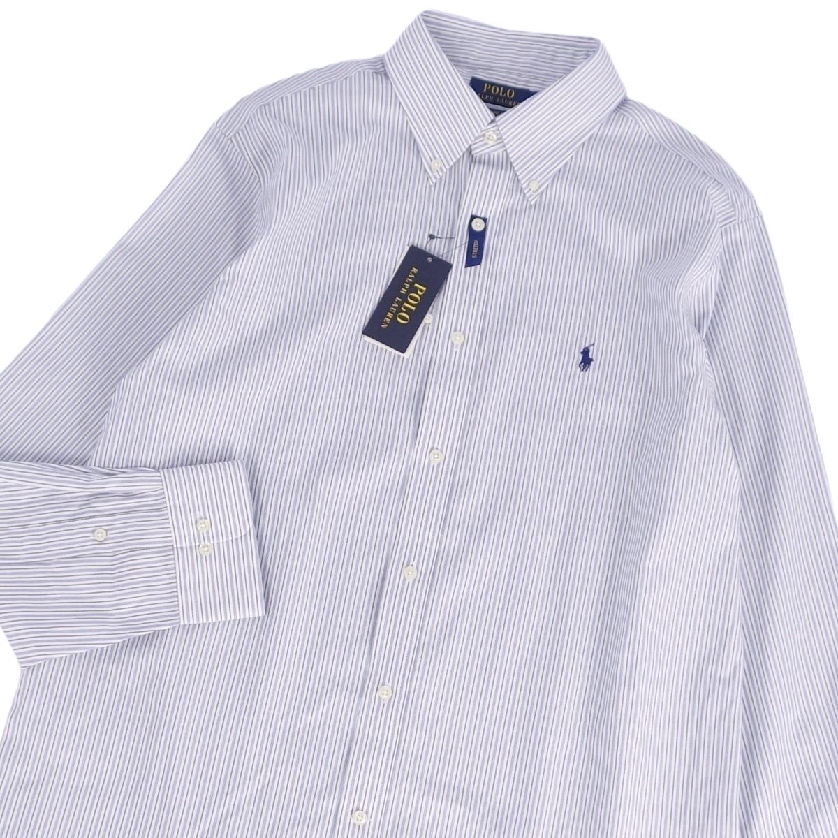【新古品】ラルフローレン RALPH LAUREN シャツ ロングスリーブ 長袖 ストライプ コットン トップス メンズ 45/17 ブルー【中古】