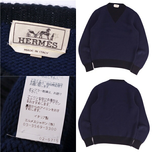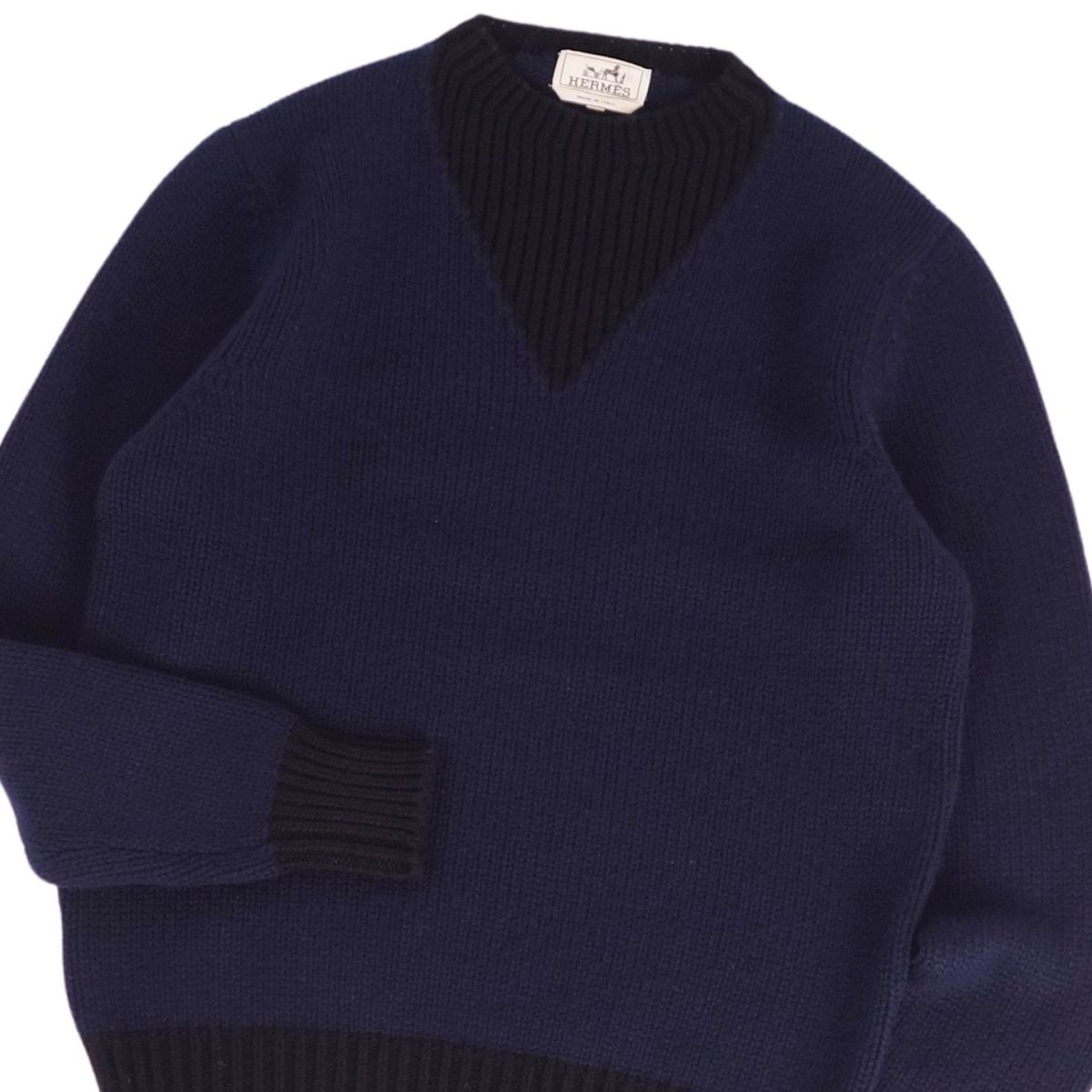 商品名 【極美品】エルメス HERMES ニット セーター ロングスリーブ 長袖 カシミヤ コットン トップス メンズ イタリア製 S ネイビー【中古】