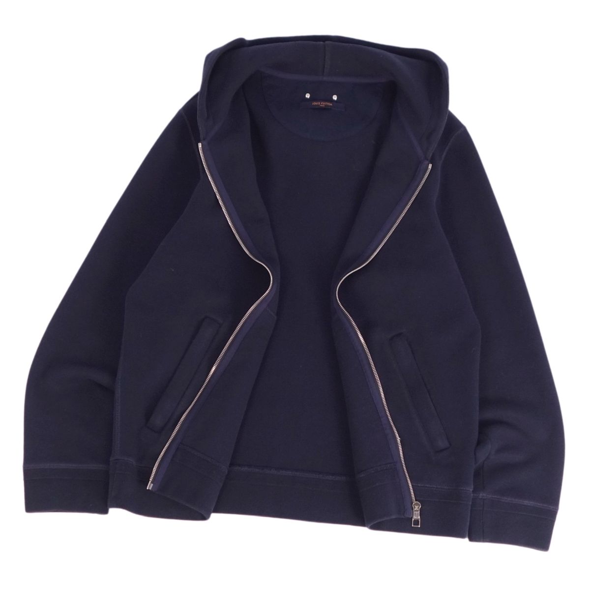 商品名 【美品】ルイヴィトン LOUIS VUITTON パーカー フーディー サークルロゴ ジップアップ スウェット コットン トップス メンズ L ネイビー【中古】