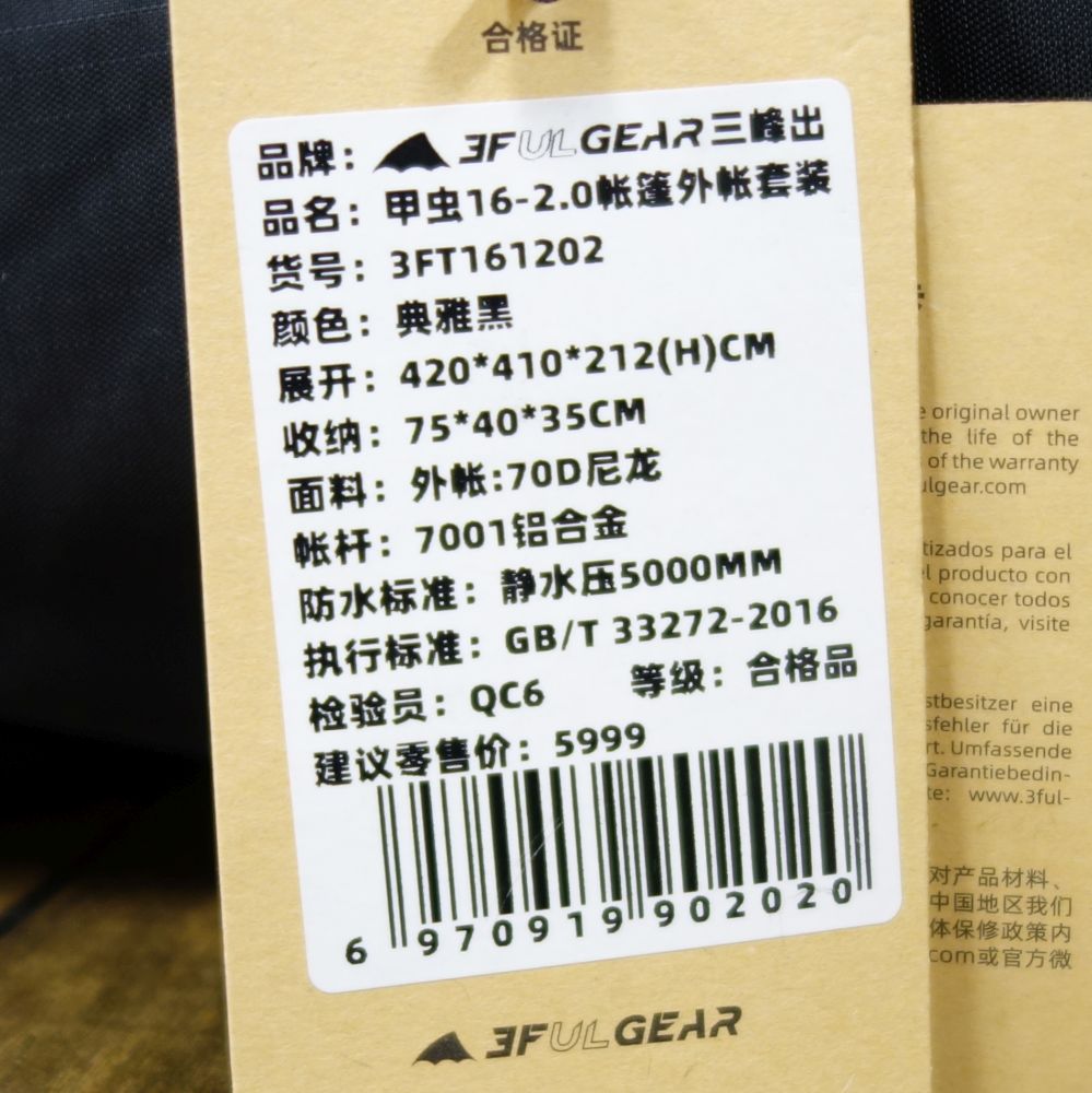 スリーエフ ウルトラライト ギア 3F UL GEAR IACHONG16-2.0 拡張テント セット ドーム テント キャンプ アウトドア – サイズ-