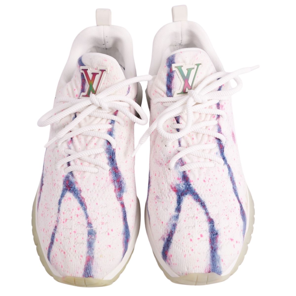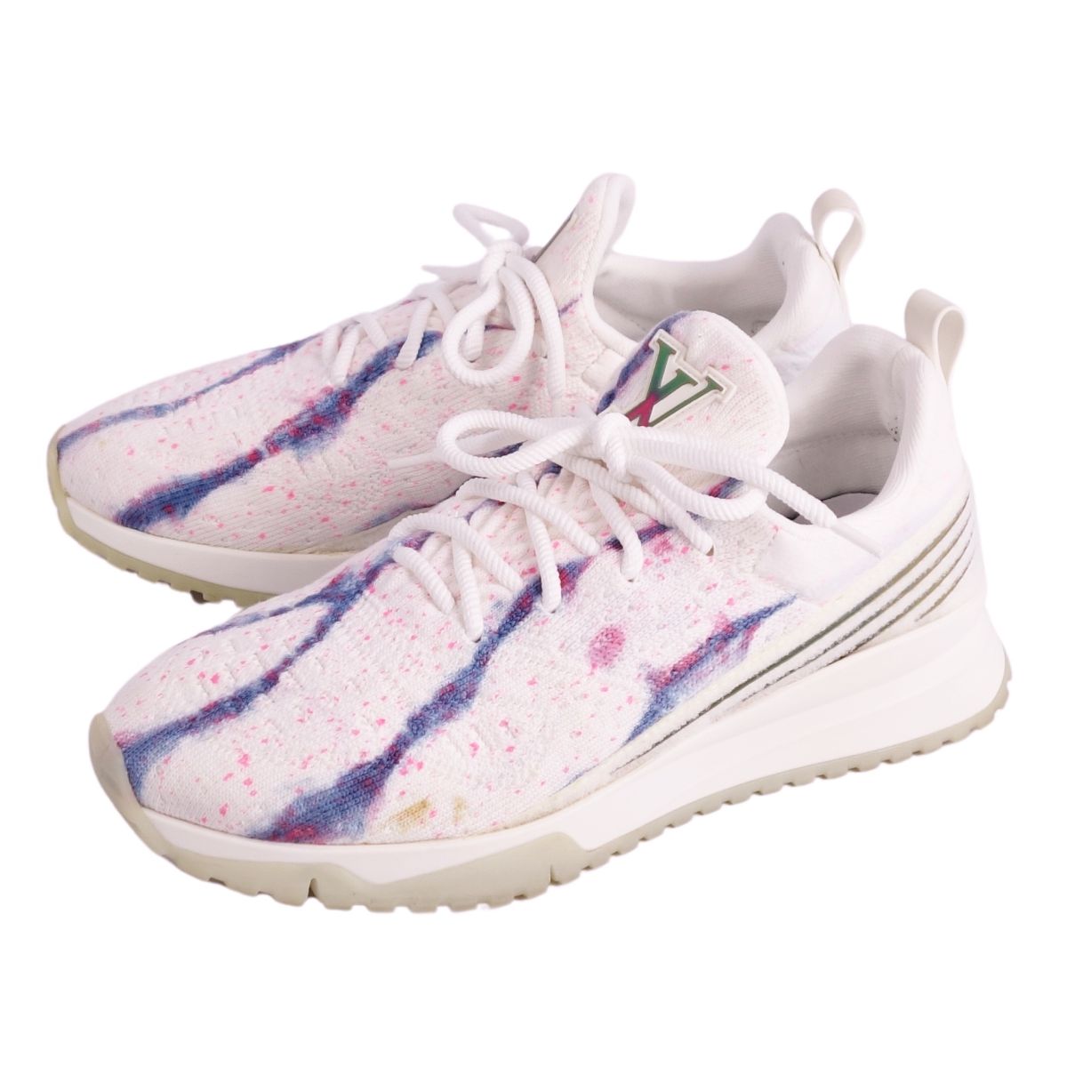 ルイヴィトン LOUIS VUITTON スニーカー レースアップ V.N.R ライン LVロゴ ニット シューズ メンズ イタリア製 ホワイト サイズ7(26cm相当)