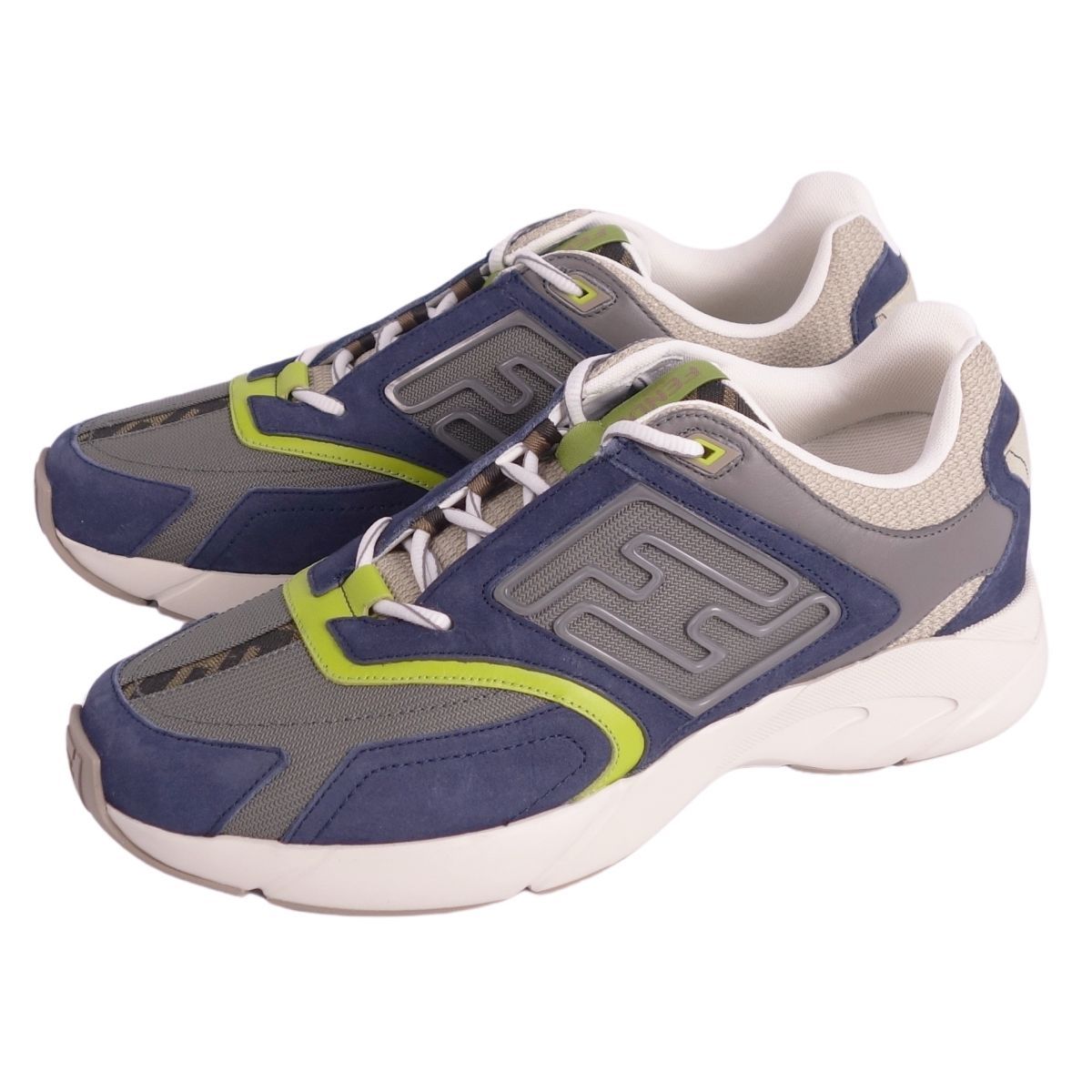 商品名 【新古品】フェンディ FENDI スニーカー Faster Trainers ファスター レザー ファブリック シューズ 靴 メンズ イタリア製 8(27cm相当) ネイビー/グレー【中古】