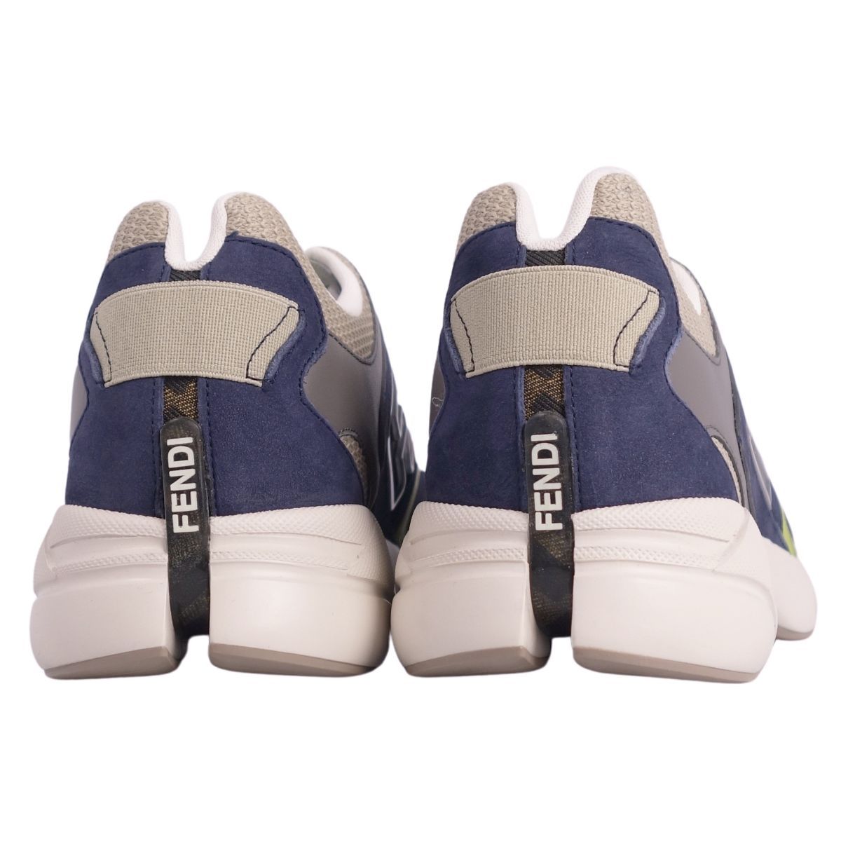 【新古品】フェンディ FENDI スニーカー Faster Trainers ファスター レザー ファブリック シューズ 靴 メンズ イタリア製 8(27cm相当) ネイビー/グレー【中古】