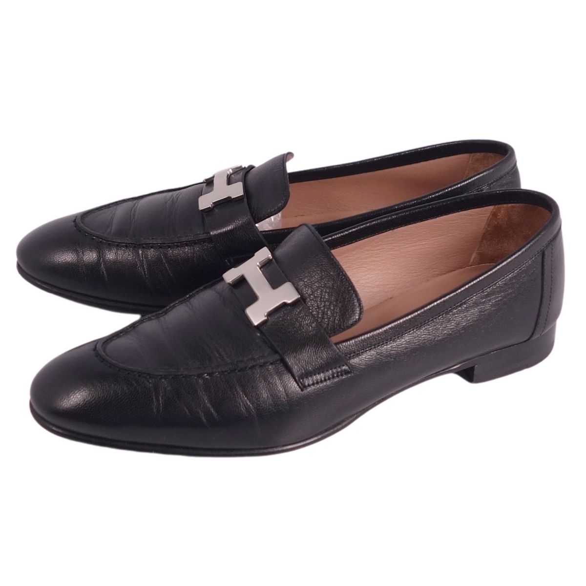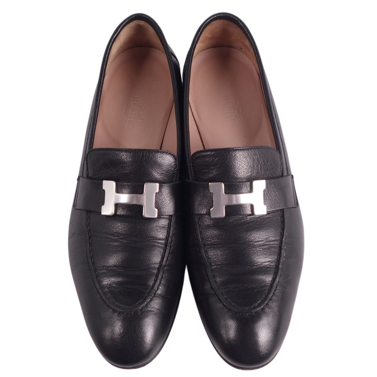 エルメス HERMES ローファー モカシン Hロゴ コンスタンス PARI パリ レザー イタリア製 シューズ 靴 レディース ブラック サイズ38.5 (25cm相当)