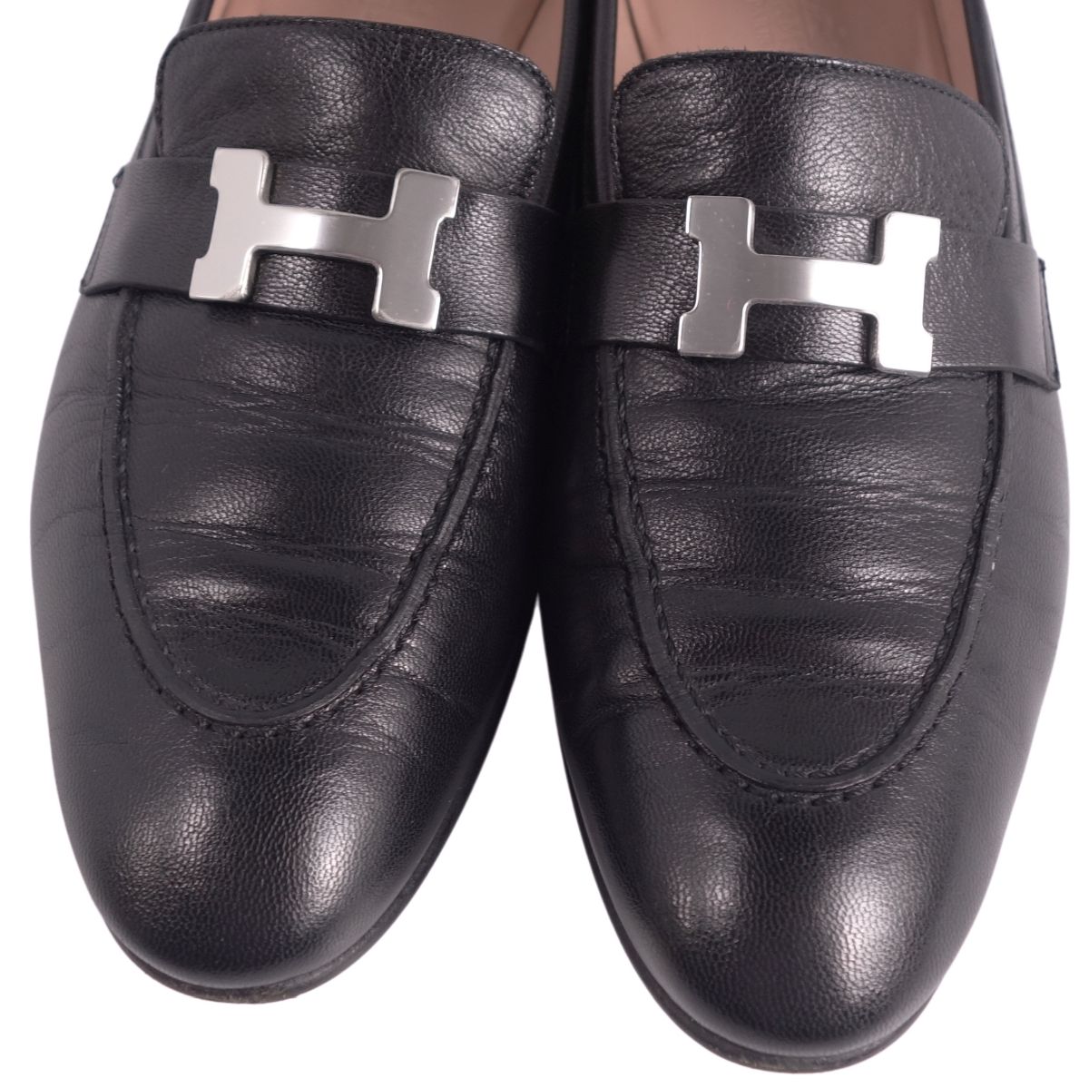 商品名 【美品】エルメス HERMES ローファー モカシン Hロゴ コンスタンス PARI パリ レザー イタリア製 シューズ 靴 レディース 38.5 (25cm相当) ブラック【中古】