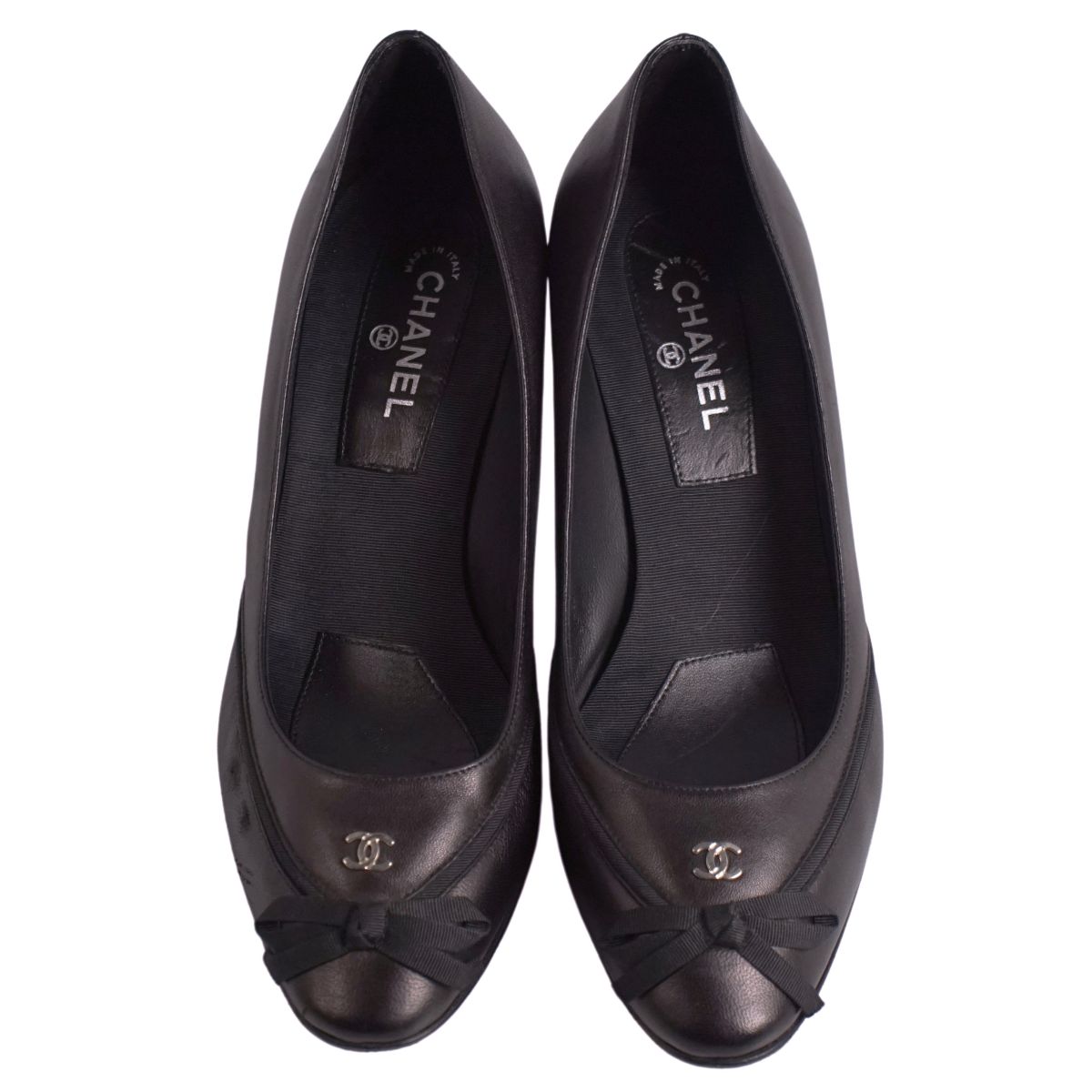 シャネル CHANEL パンプス リボン ココマーク レザー ヒール シューズ 靴 レディース イタリア製 ブラック サイズ35C