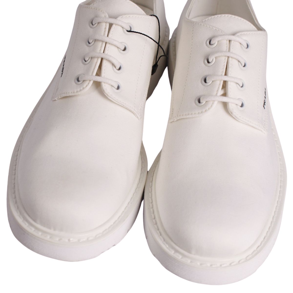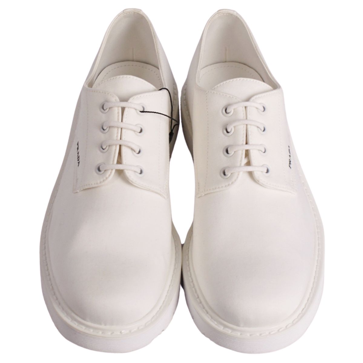 プラダ PRADA スニーカー ダービーシューズ ロゴ キャンバス シューズ 靴 メンズ イタリア製 ホワイト サイズ9.5(28.5cm相当)