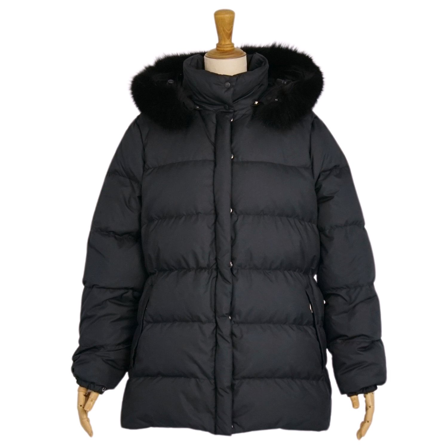 モンクレール MONCLER ジャケット 茶タグ ダウンジャケット バレンタイン ラクーンファー アウター レディース ブラック サイズ0(S相当)