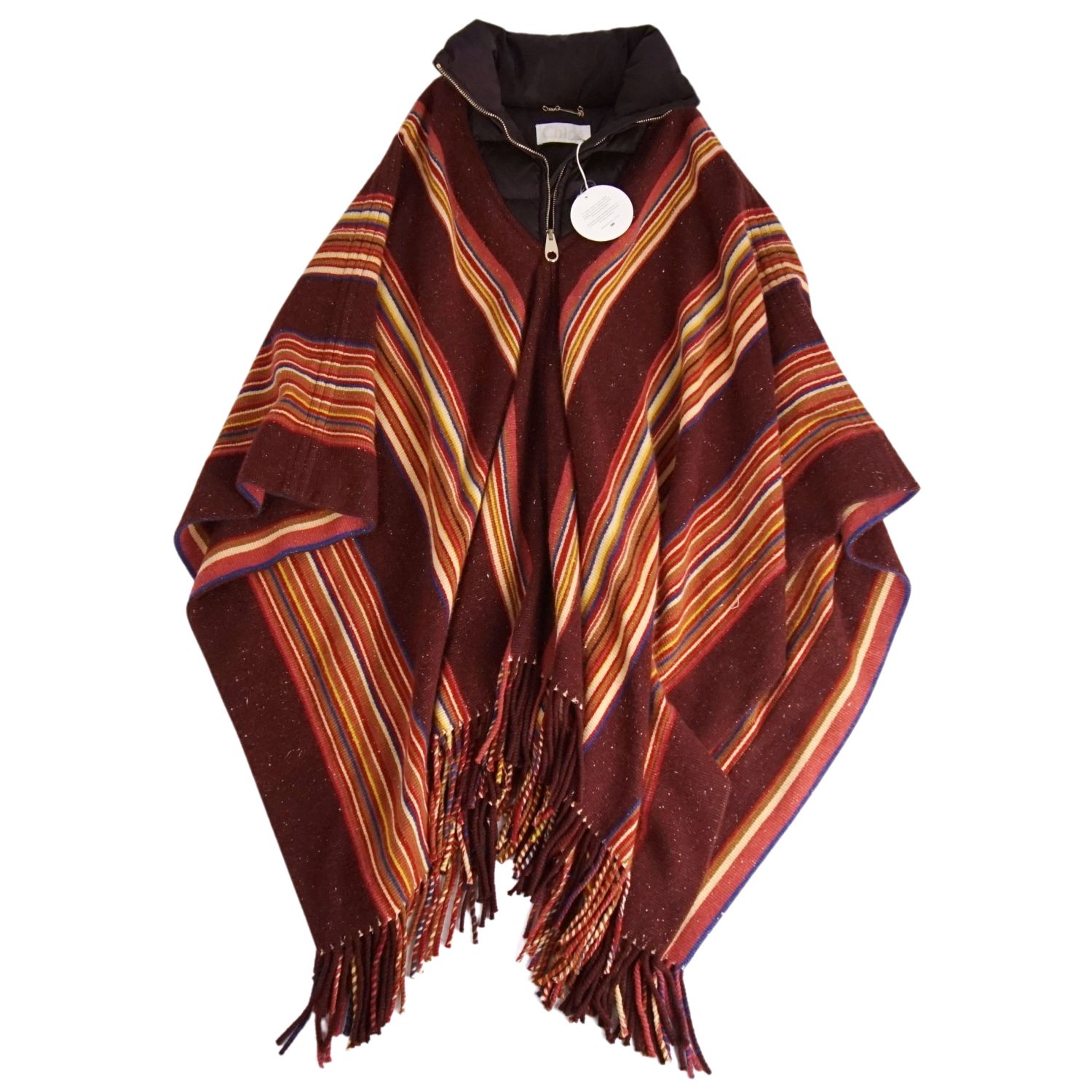 【新古品】クロエ Chloe コート 21AW ポンチョ 襟ダウン 総柄 カシミヤ シルク アウター レディース イタリア製 TU ブラウン【中古】