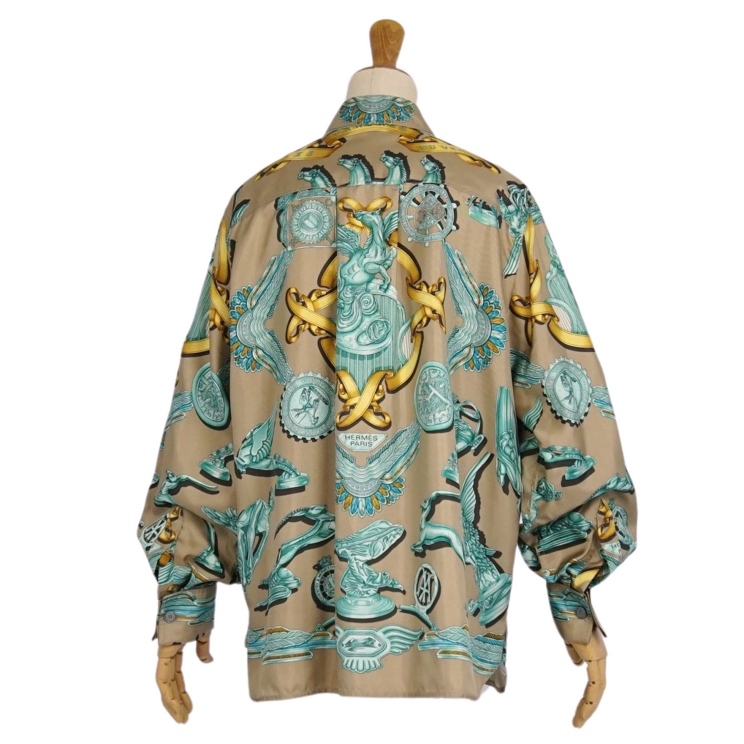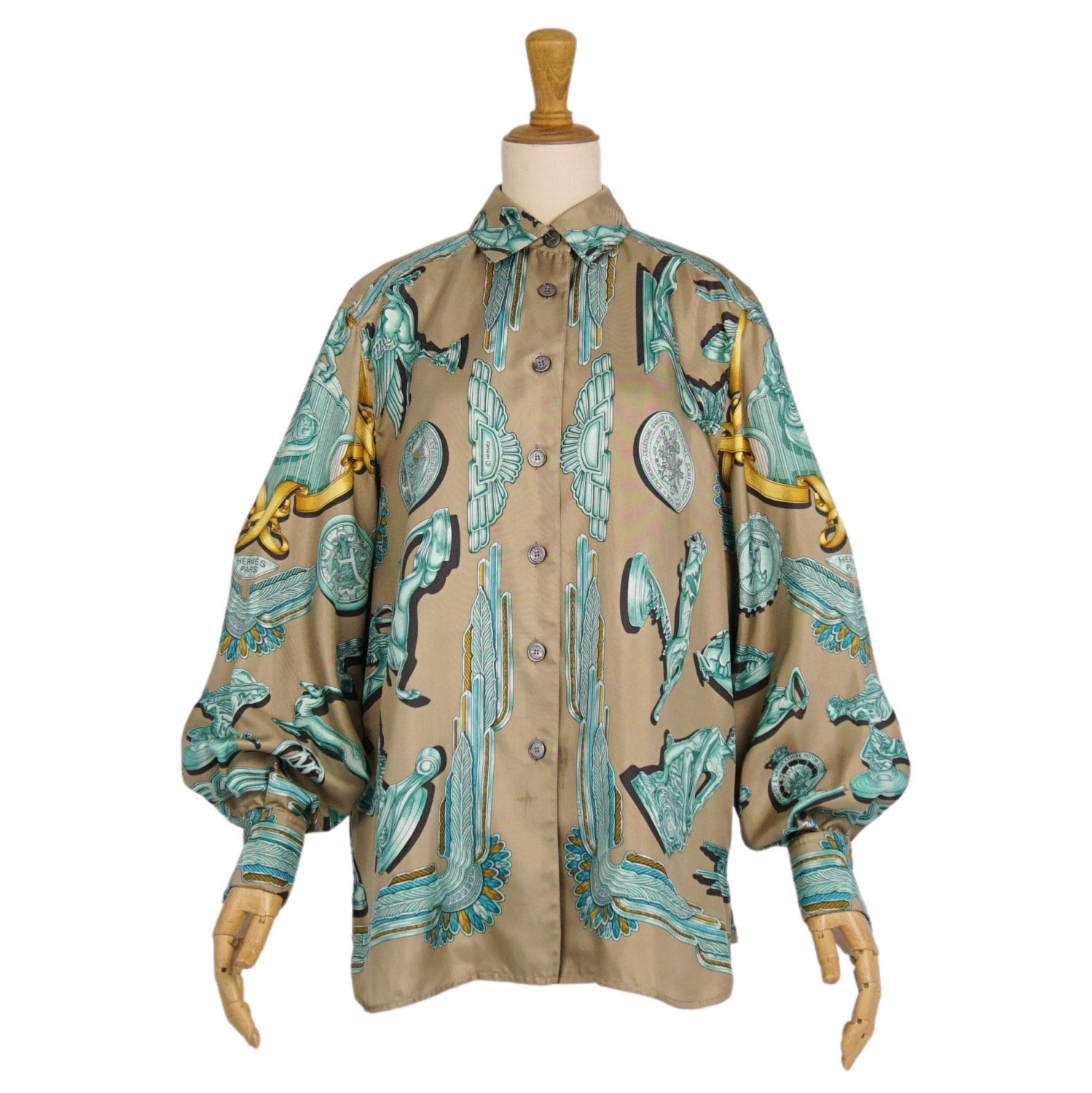 Vintage エルメス HERMES シャツ ブラウス ロングスリーブ 長袖 総柄 シルク トップス レディース フランス製 マルチカラー サイズ36(S相当)