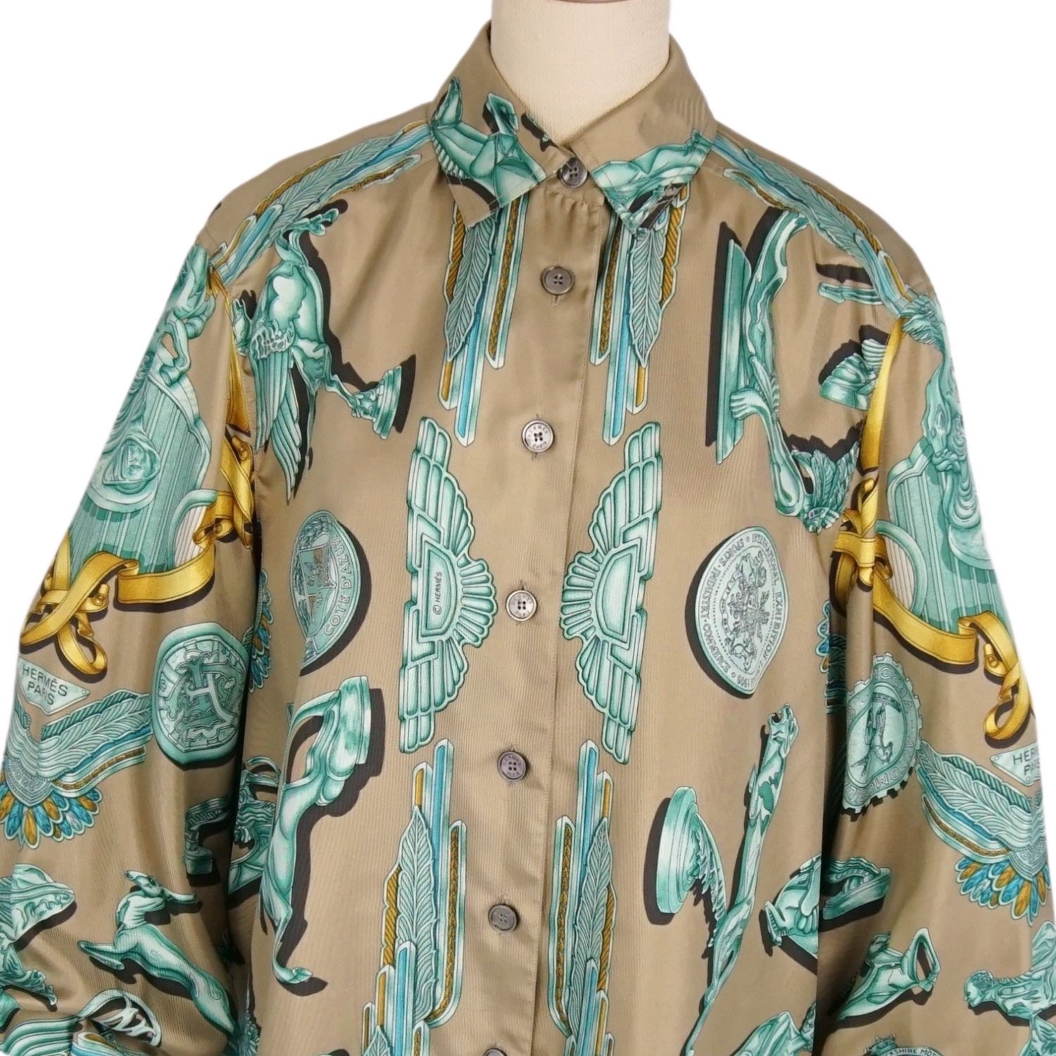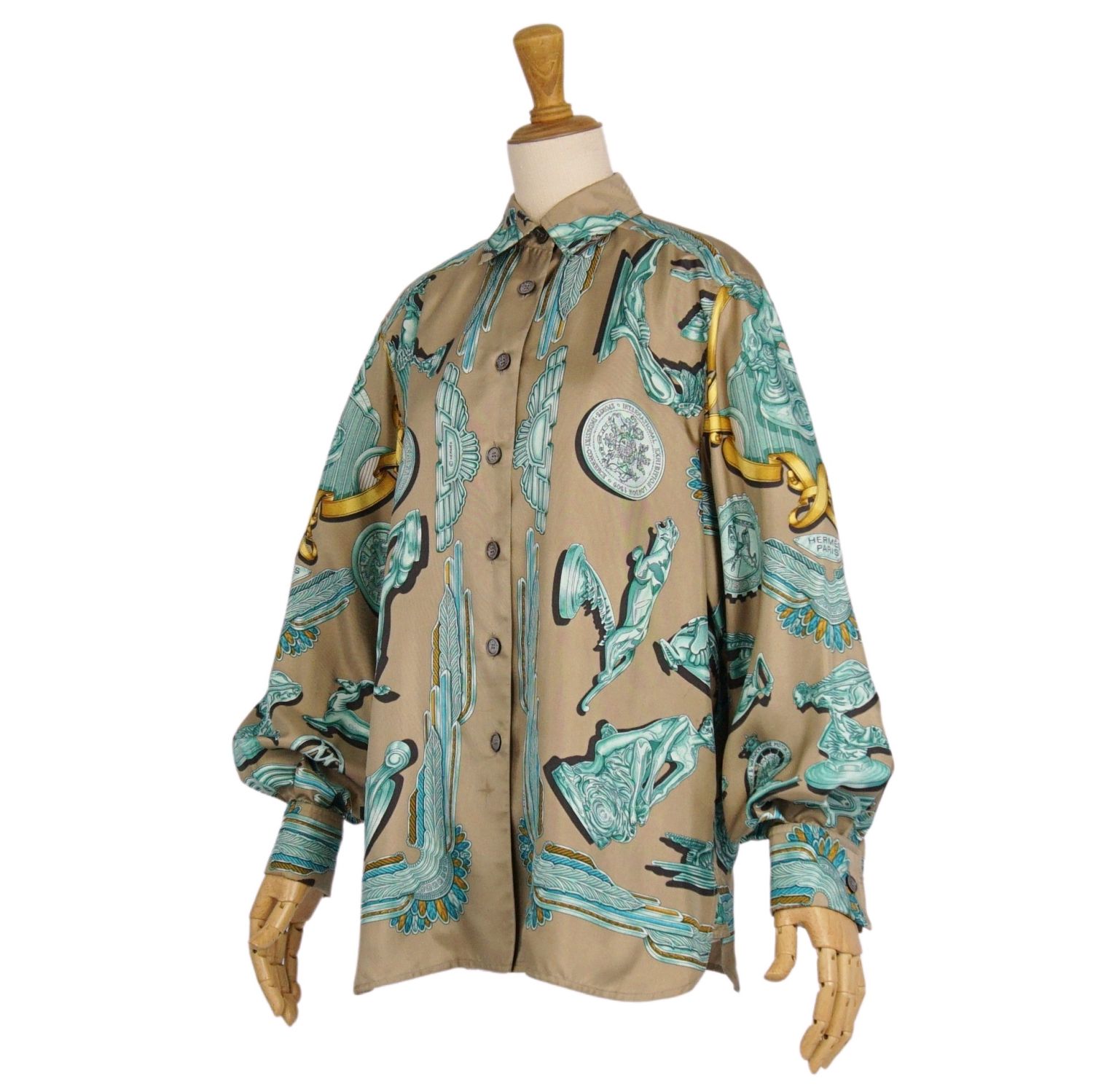 【美品】Vintage エルメス HERMES シャツ ブラウス ロングスリーブ 長袖 総柄 シルク トップス レディース フランス製 36(S相当) マルチカラー【中古】