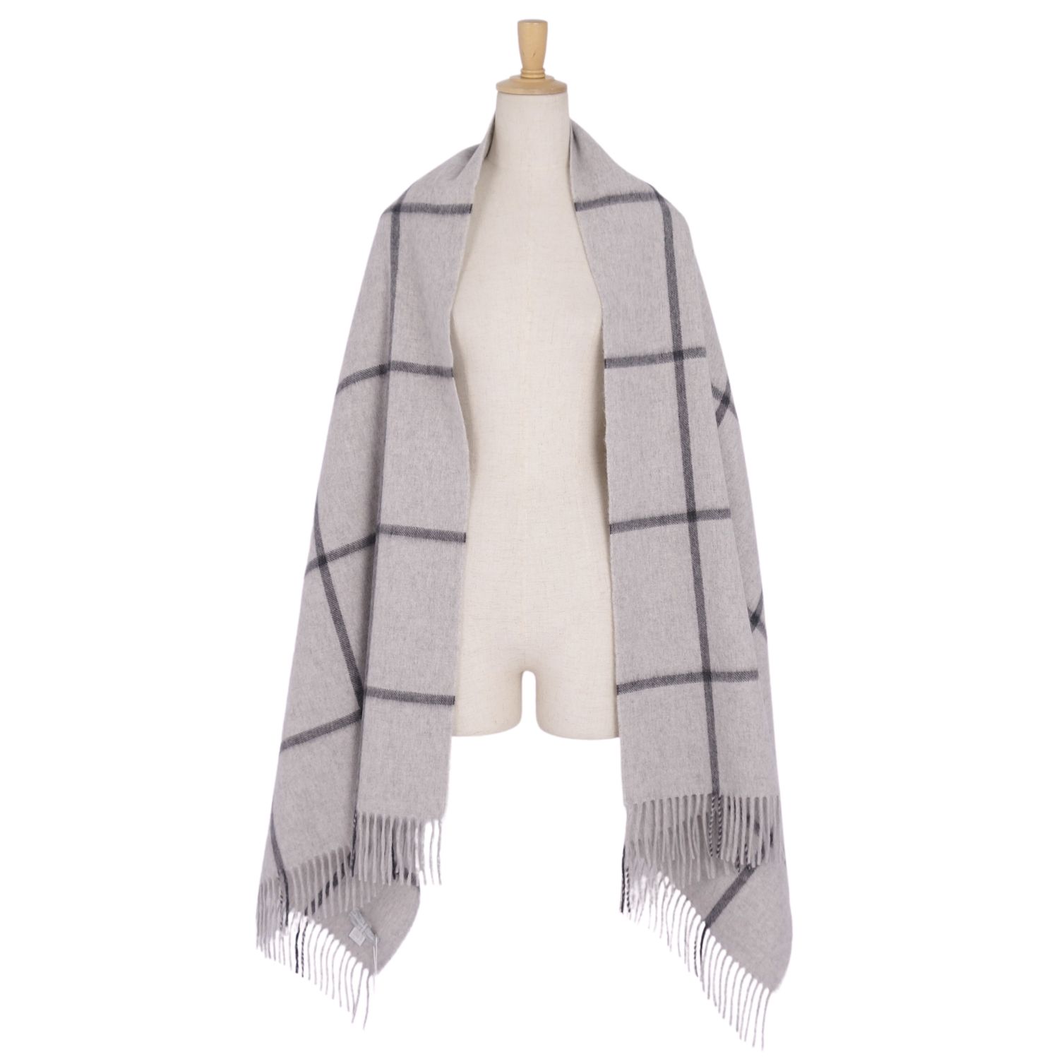 ジョシュアエリス Joshua Ellis マフラー ストール ショール チェック カシミヤ100% レディース イングランド製 グレー サイズ-