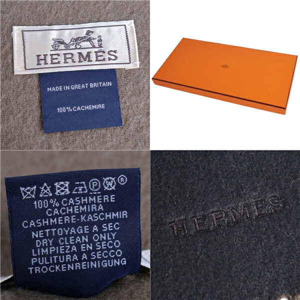 エルメス HERMES マフラー ストール フリンジ カシミヤ100% メンズ レディース イギリス製 ブラック サイズ-