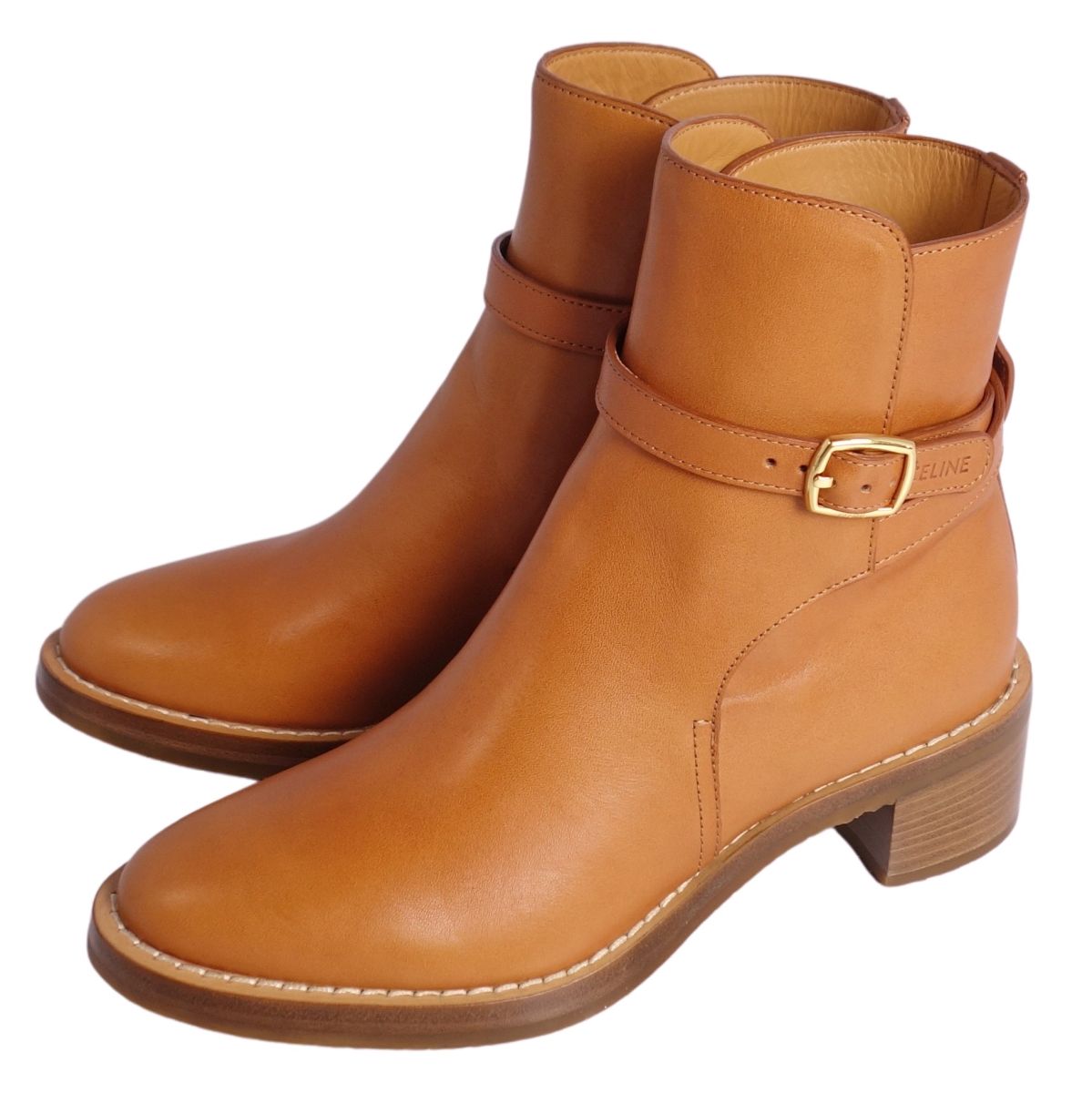 セリーヌ CELINE ブーツ ショートブーツ レザー ヒール シューズ 靴 レディース イタリア製 ブラウン サイズ36(23cm相当)