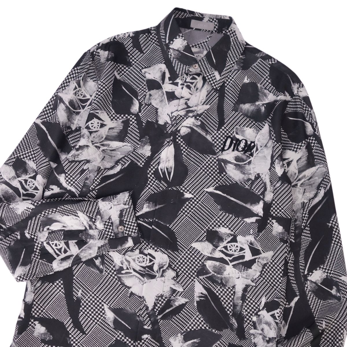 ディオールオム DIOR HOMME シャツ 2020 ロングスリーブ 長袖 総柄 シルク トップス メンズ イタリア製 ブラック/ホワイト サイズ37