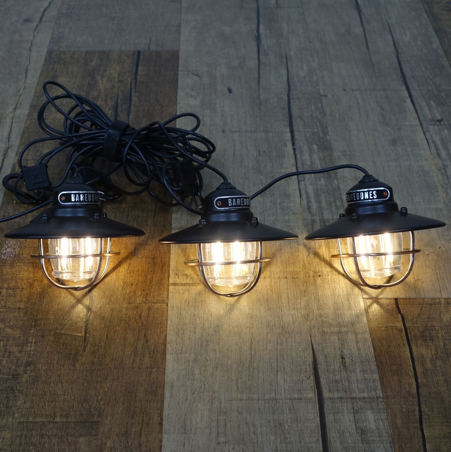 【美品】ベアボーンズ BAREBONES エジソン ストリング ライト LED ブラック 3連 ランタン 照明 灯り キャンプ アウトドア【中古】