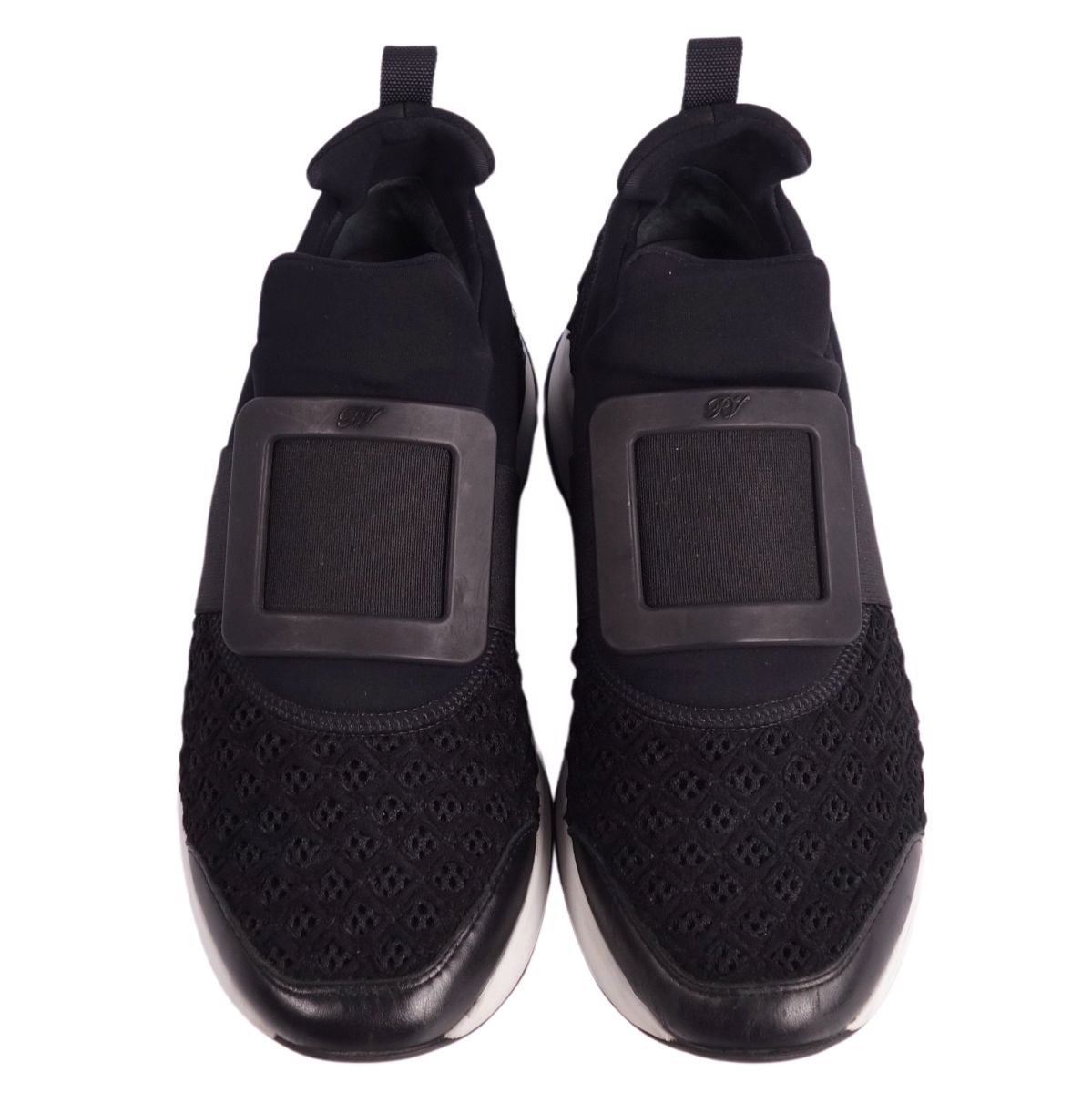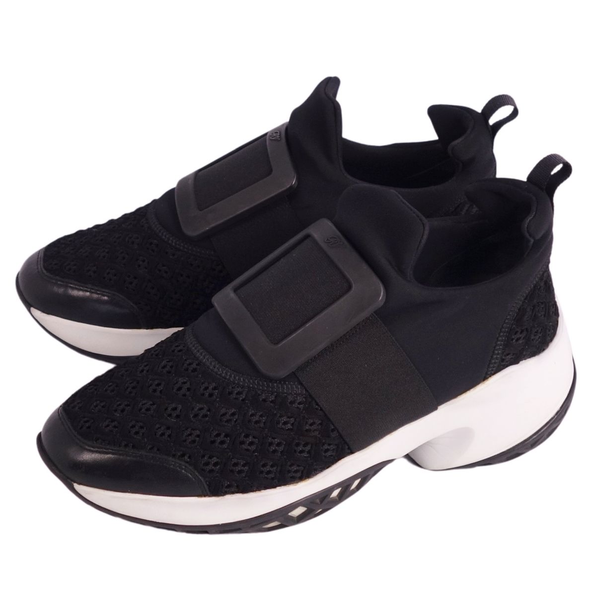 【美品】ロジェヴィヴィエ Roger Vivier スニーカー スリッポン VIV RUN ヴィヴ ラン クリスタルバックル シューズ 靴 レディース イタリア製 38(25cm相当) ブラック【中古】