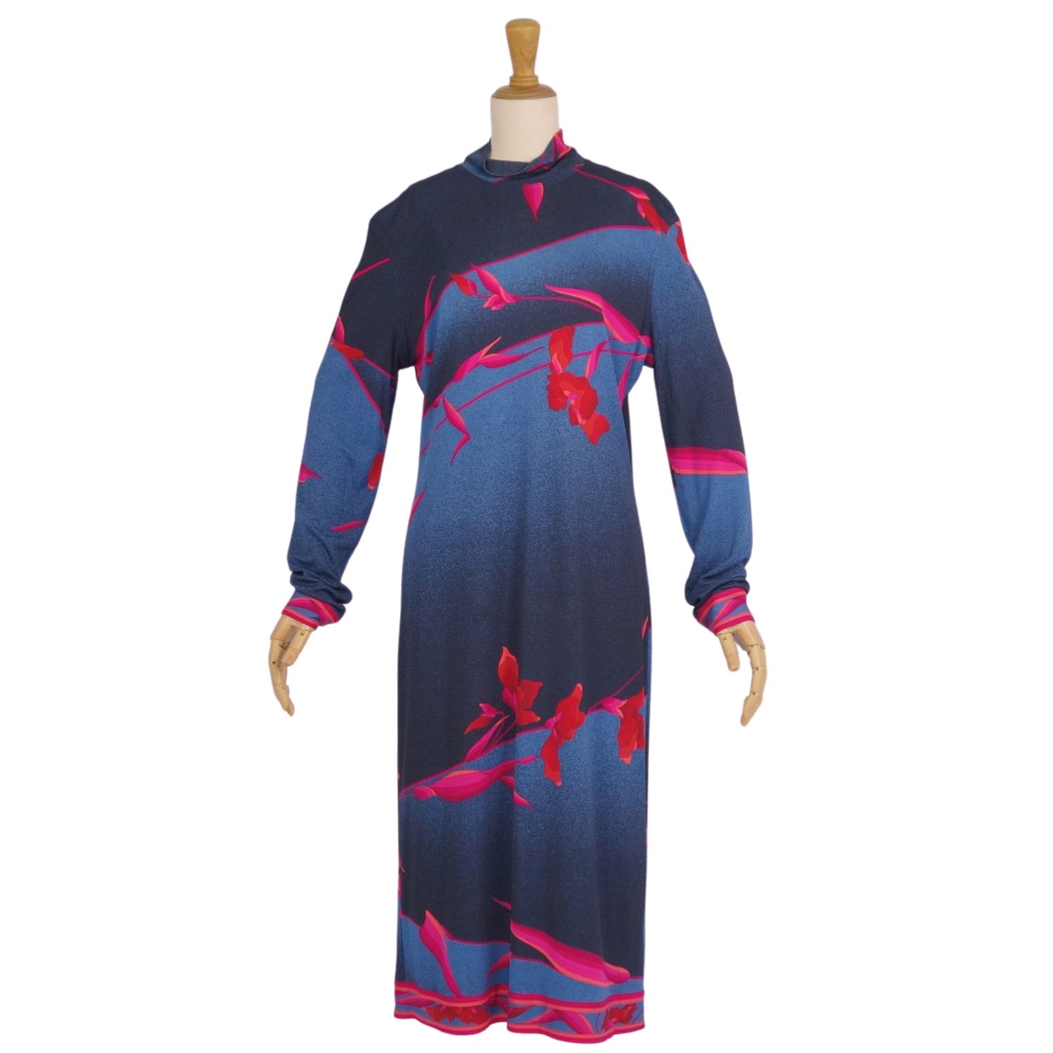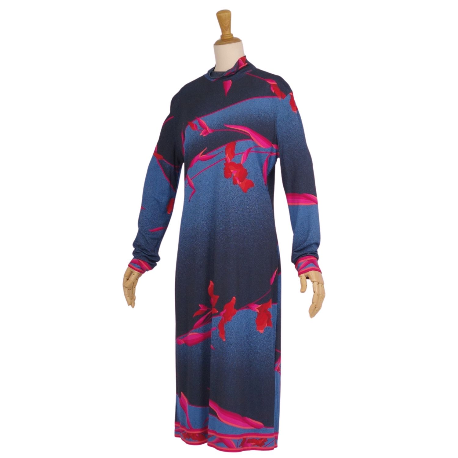 商品名 【美品】レオナール LEONARD PARIS ワンピース ロングスリーブ 長袖 シルクジャージー トップス レディース 44(XL相当) ネイビー【中古】