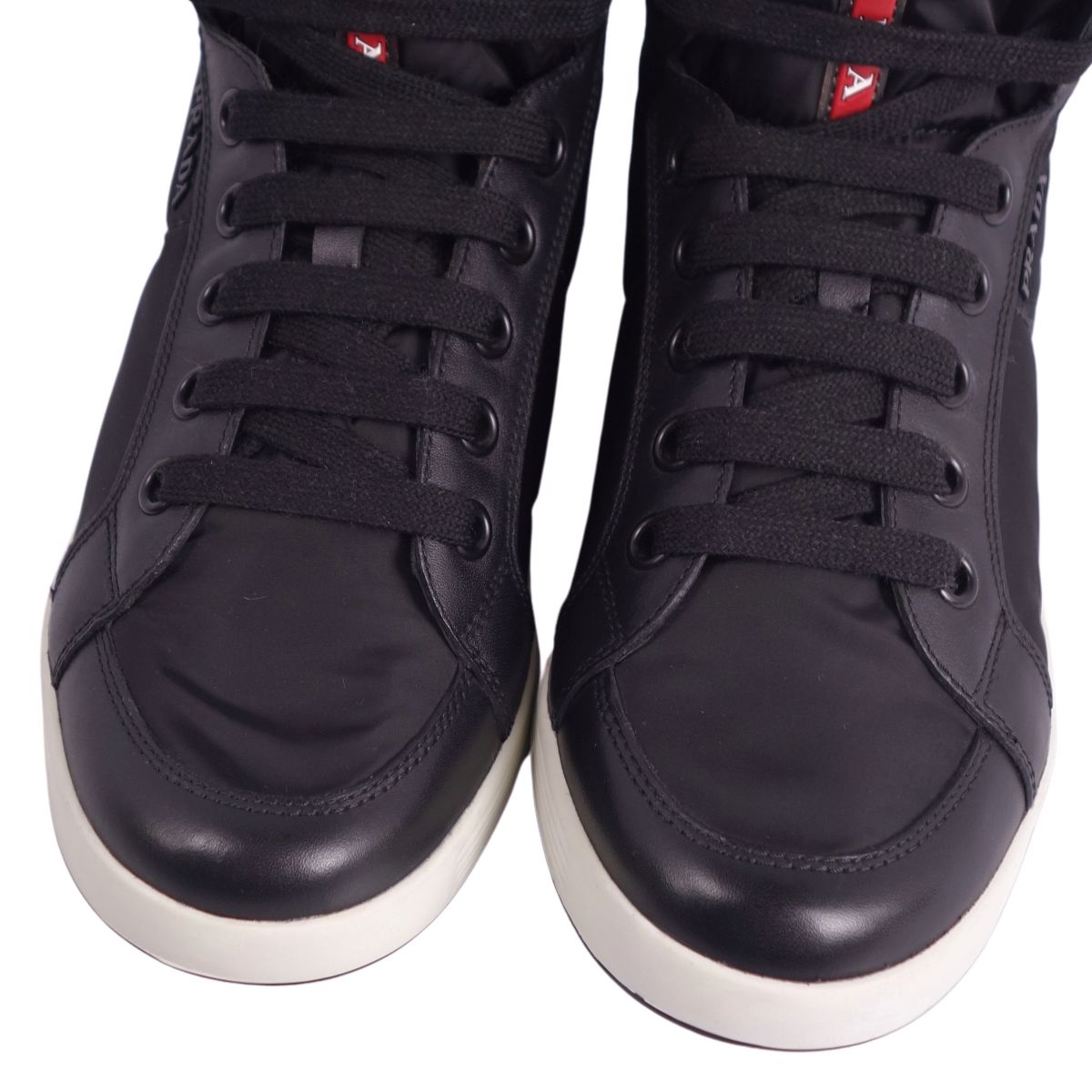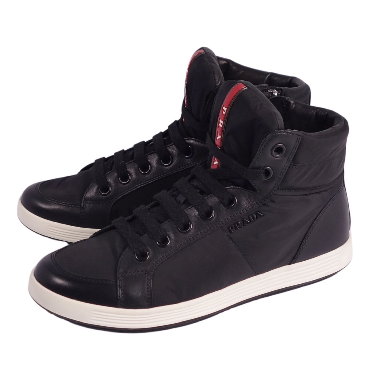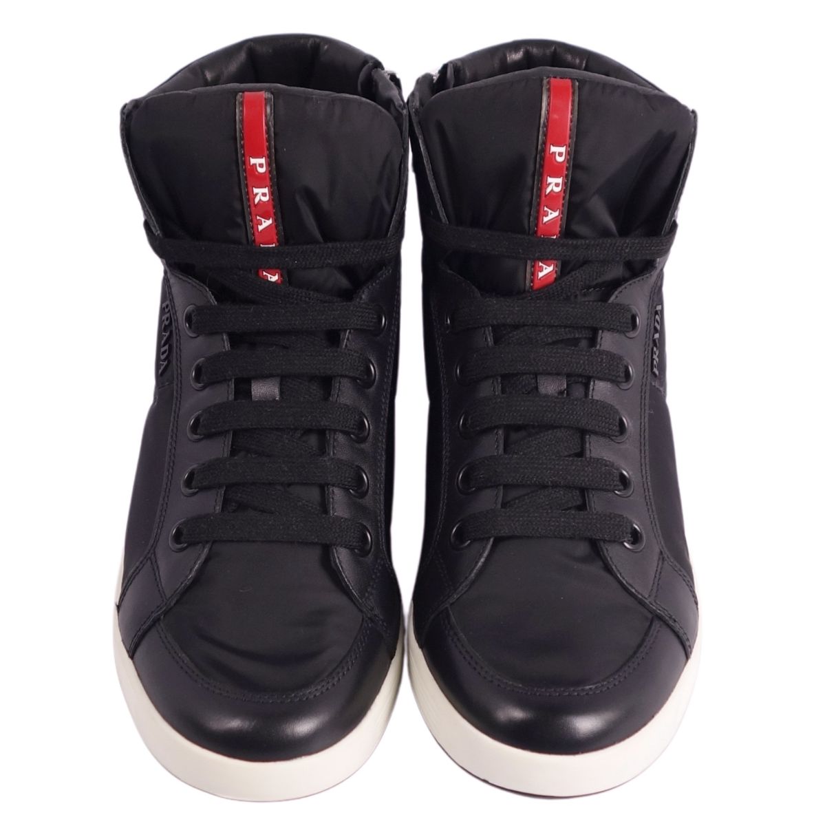 プラダ スポーツ PRADA SPORT スニーカー ハイカット サイドファスナー ナイロン レザー シューズ 靴 メンズ ブラック サイズ5.5(24.5cm相当)